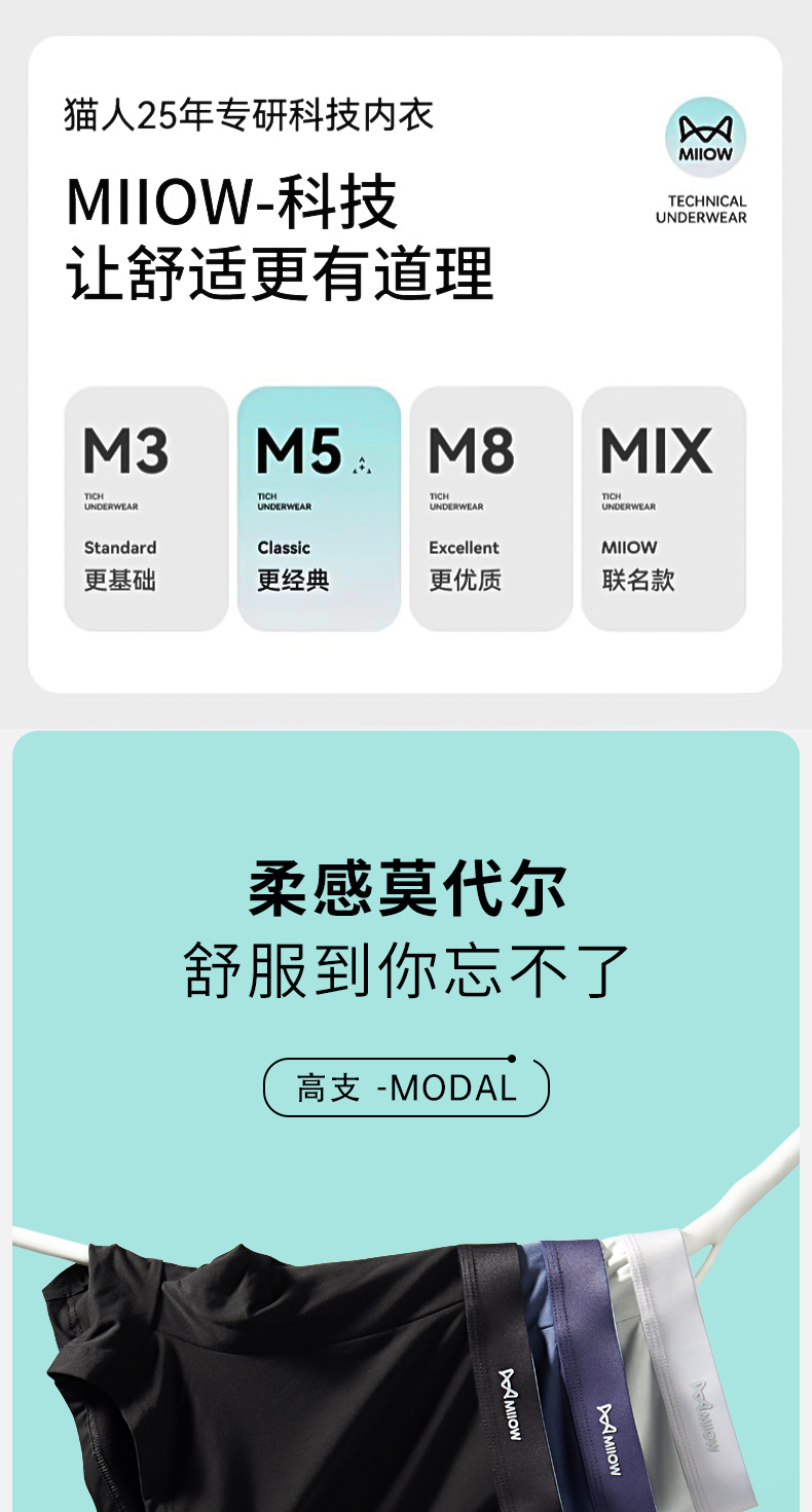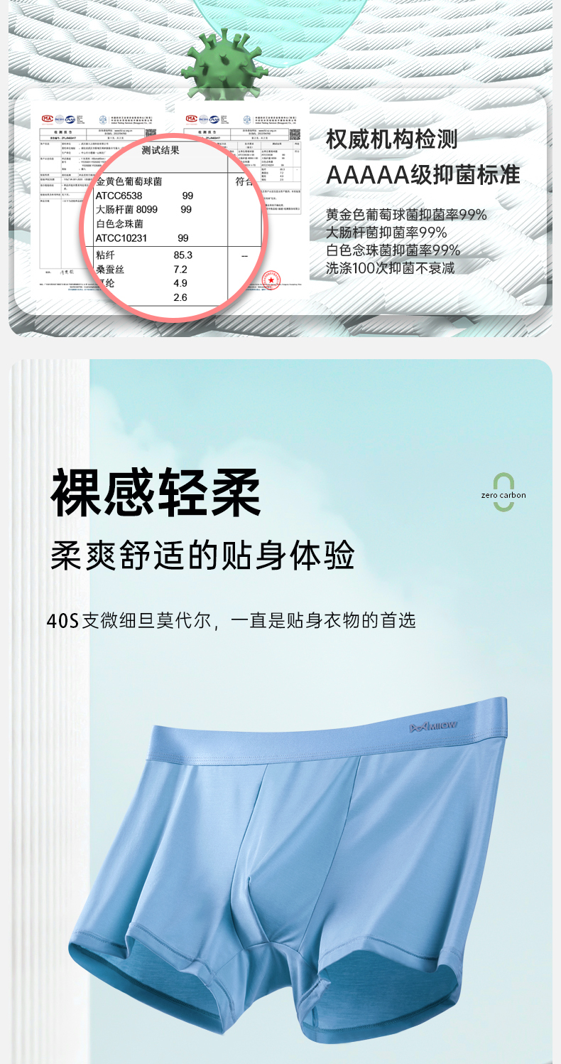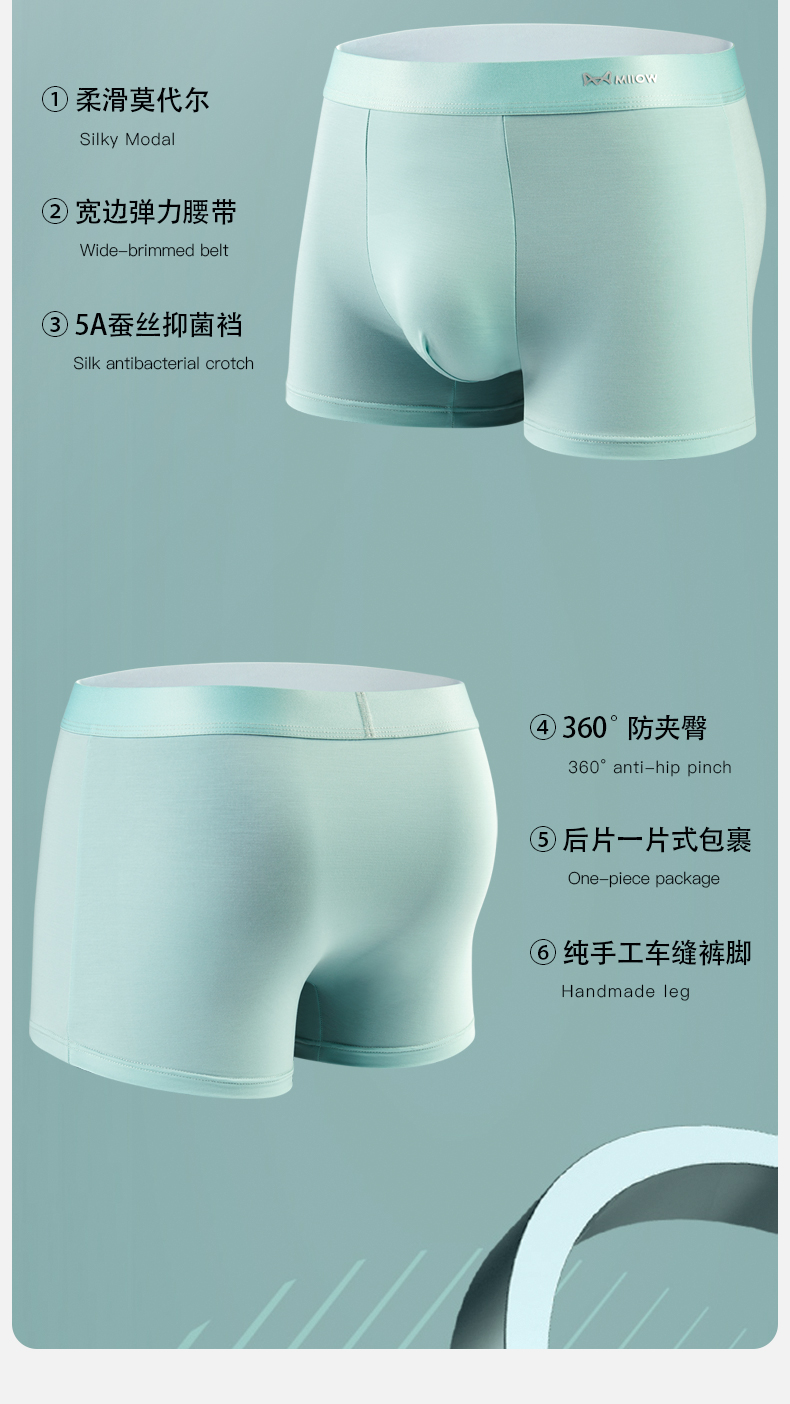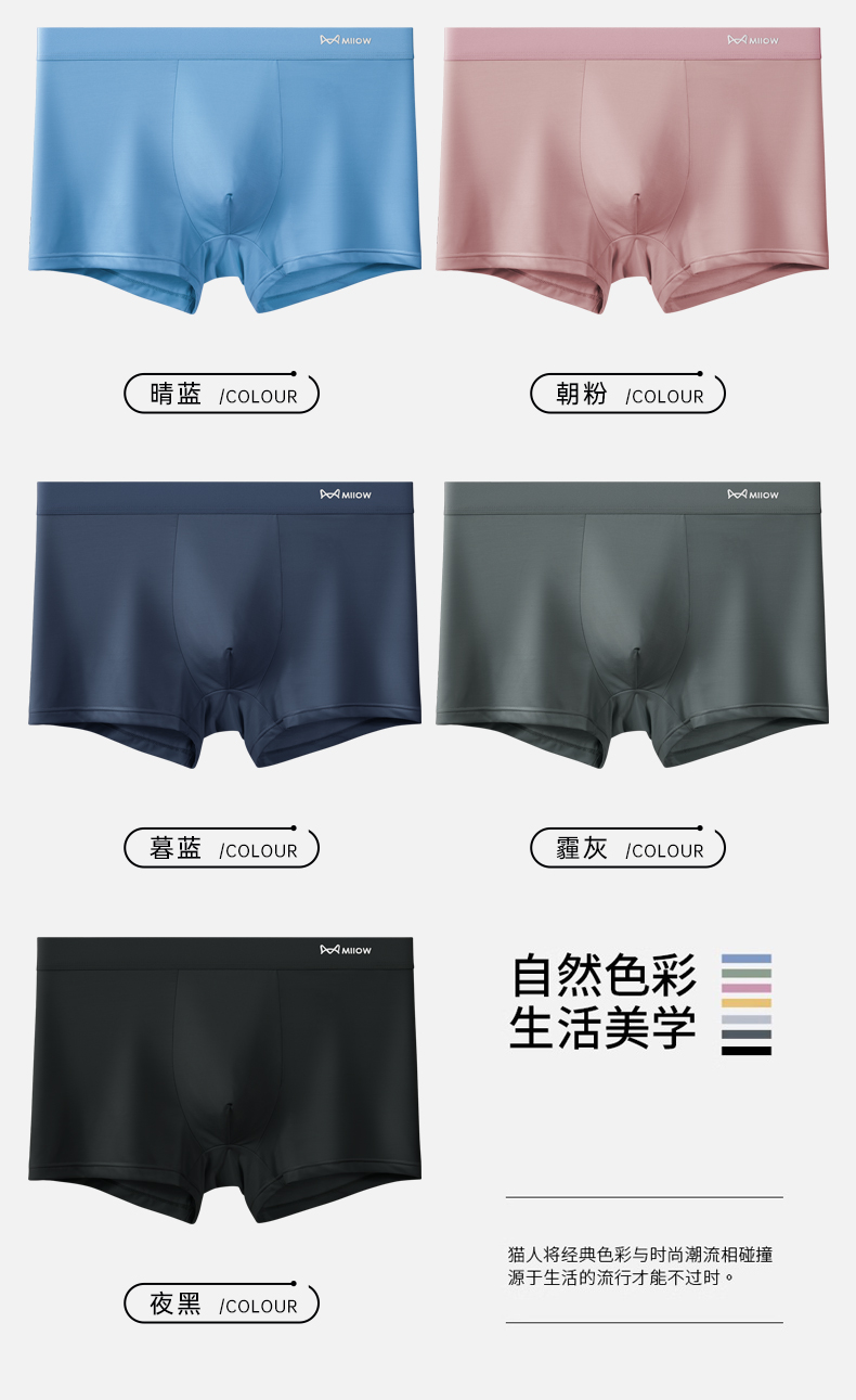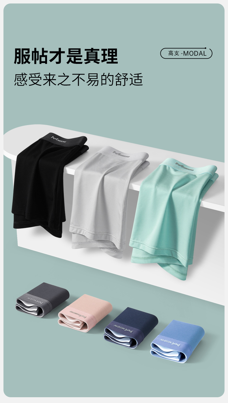 貓人莫代爾男士內褲抗菌無痕透氣四角褲2025新款青少年平角短褲頭