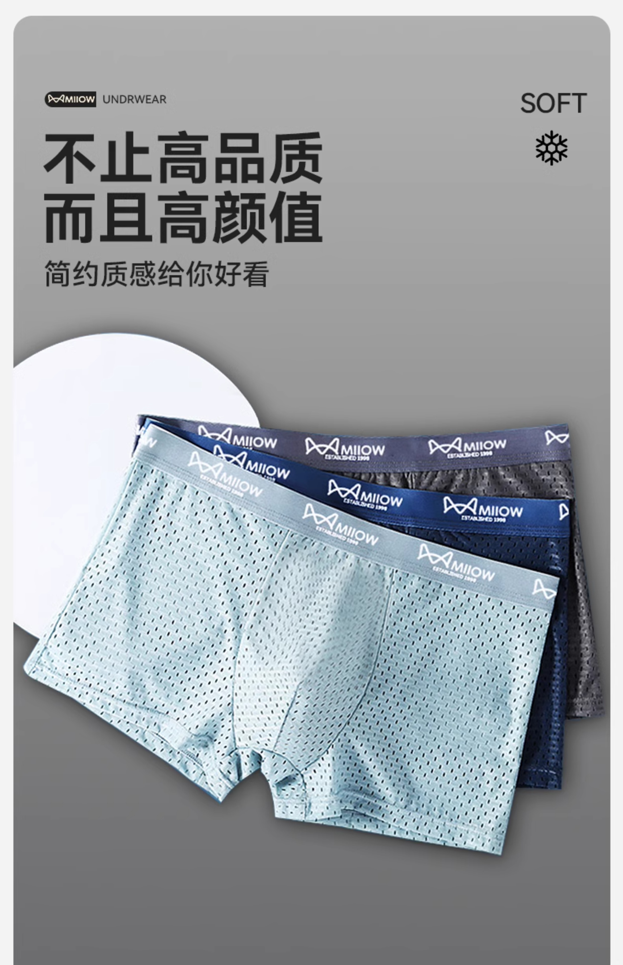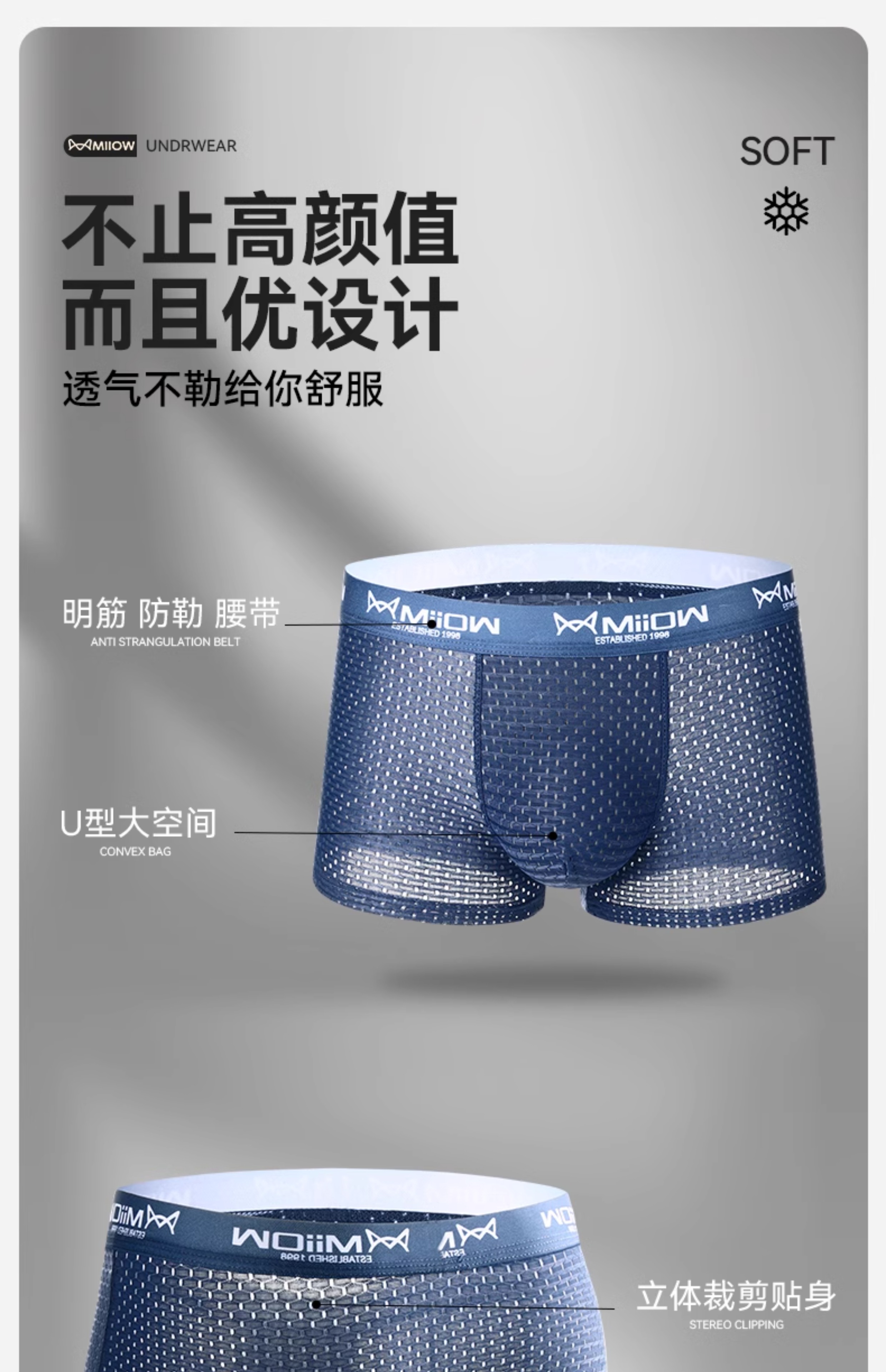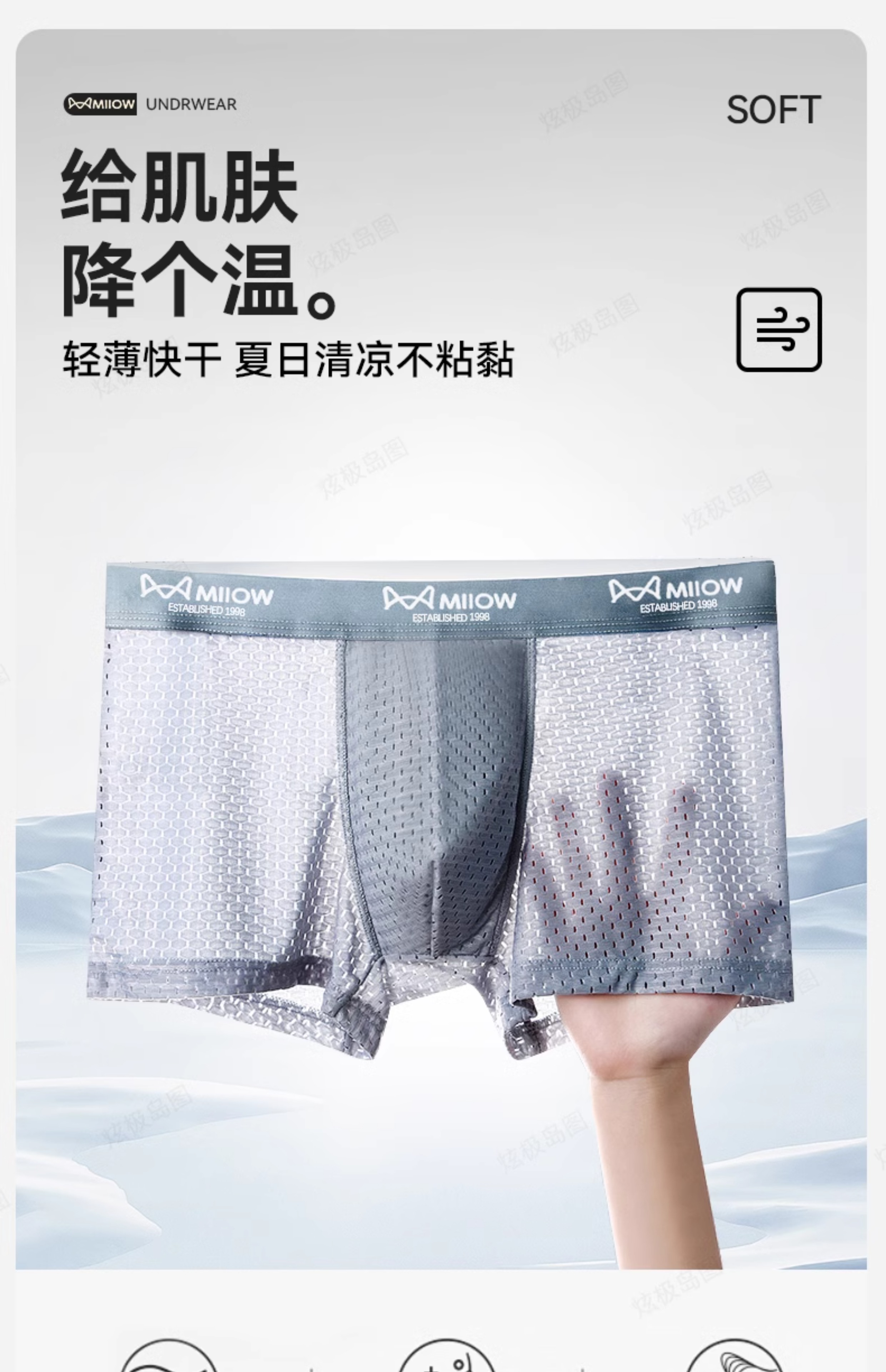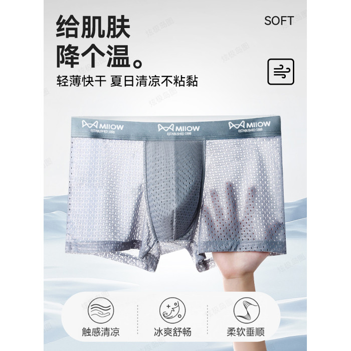 貓人冰絲男士內褲網孔透氣四角抗菌襠男生平角短褲衩夏季網眼薄款