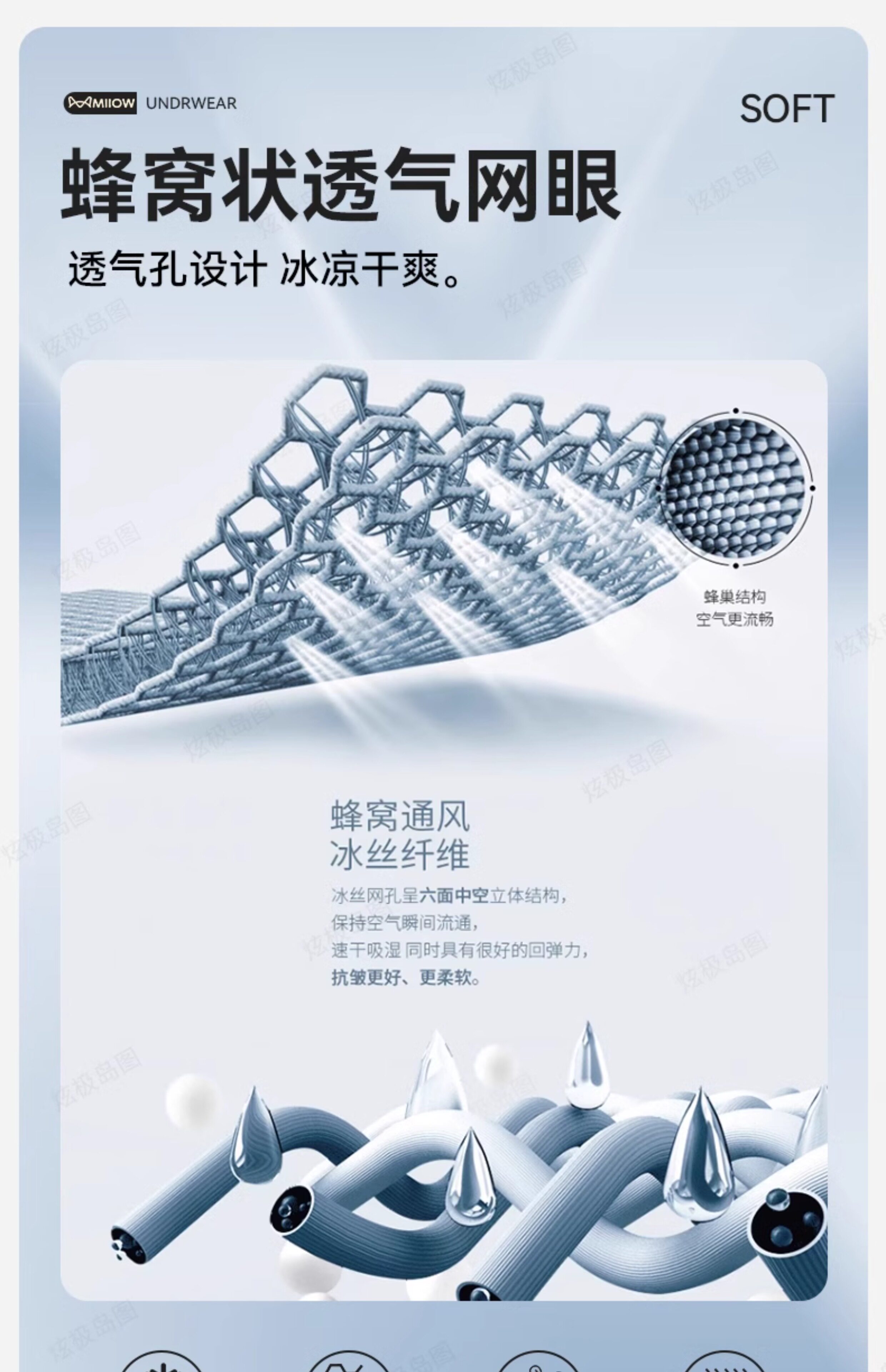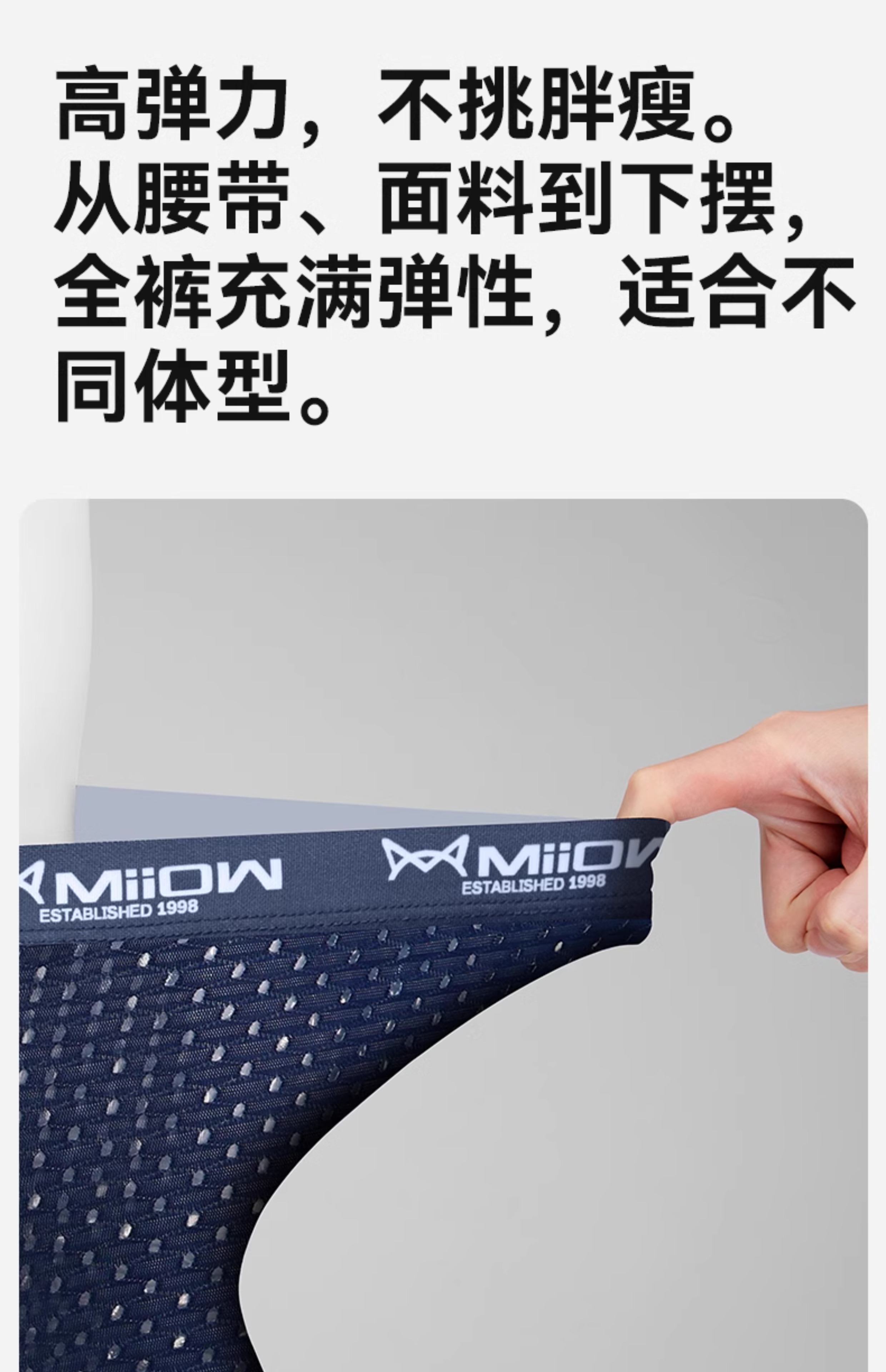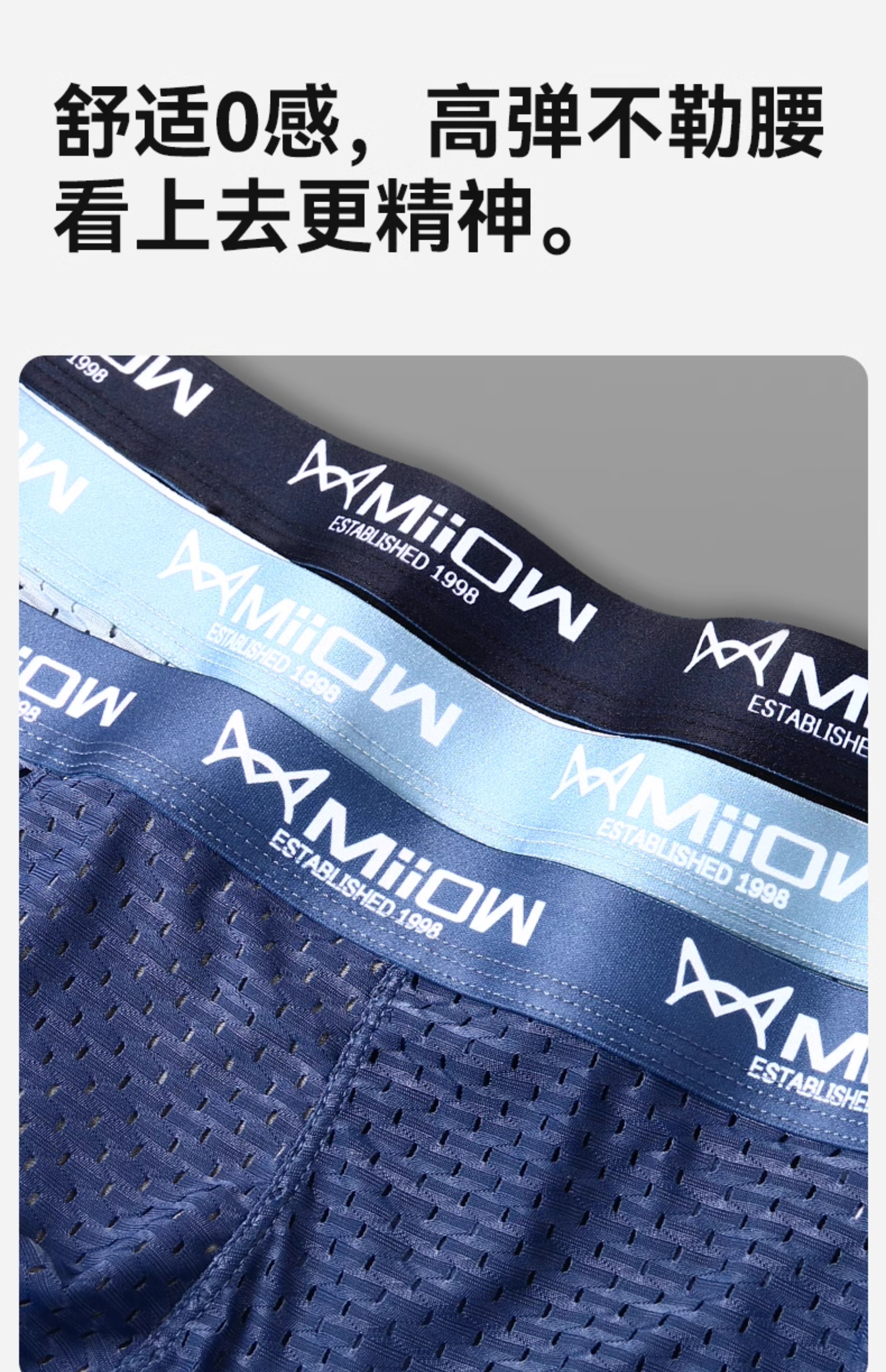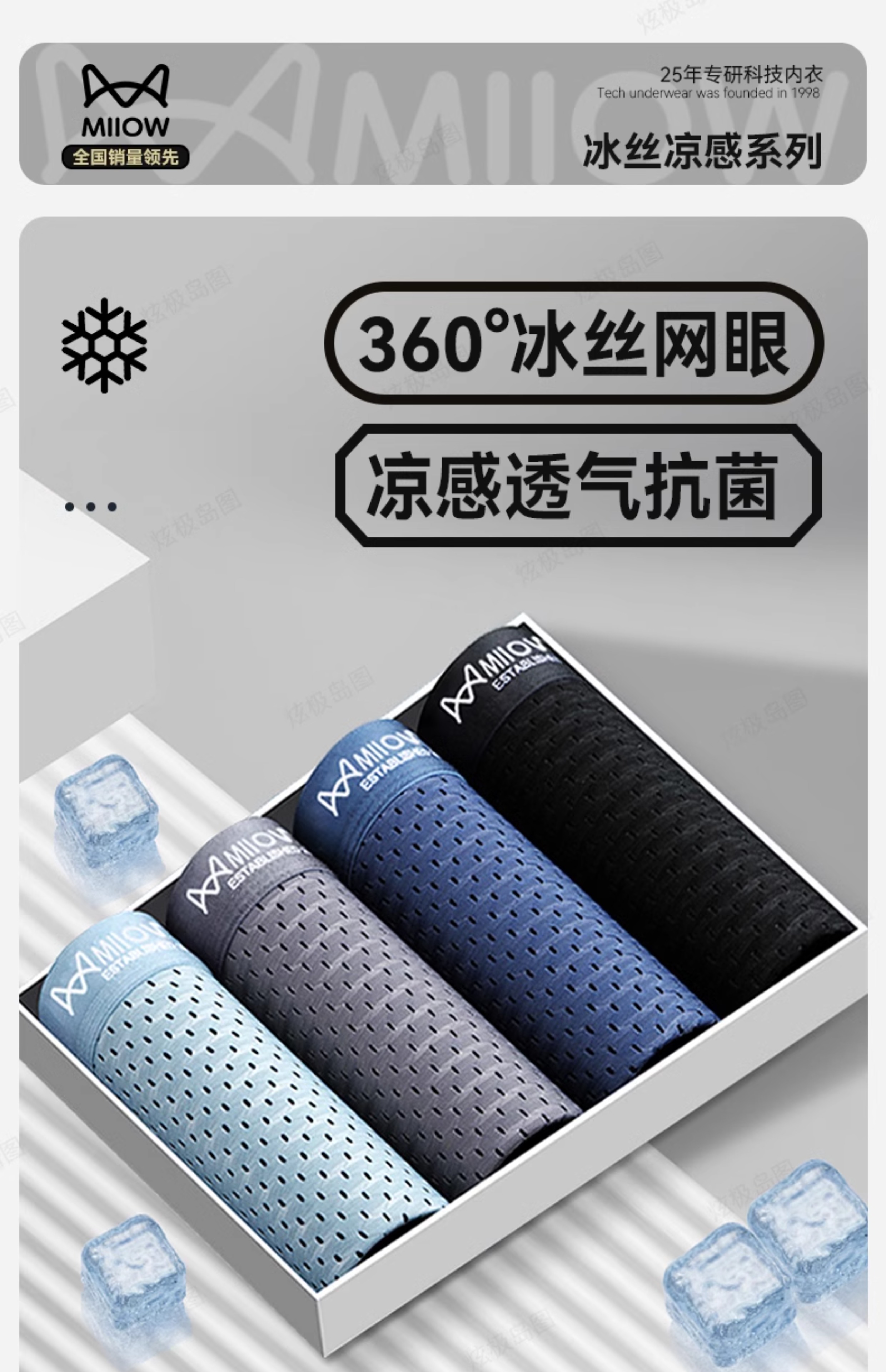 貓人冰絲男士內褲網孔透氣四角抗菌襠男生平角短褲衩夏季網眼薄款