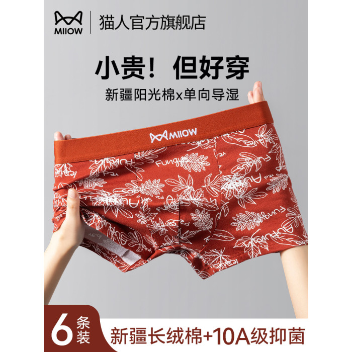 貓人男士內褲純棉男生2025新款男式抗菌四角褲大碼平角短褲頭男款