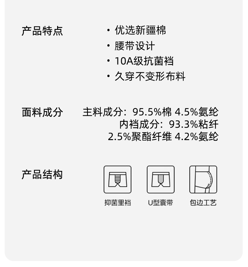 | 襠部材質成分 | 粘膠纖維(粘纖)93.3% 聚氨酯彈性纖維(氨綸)4.2% 聚酯纖維2.5% |