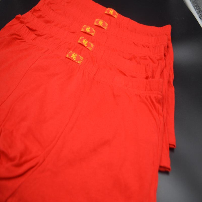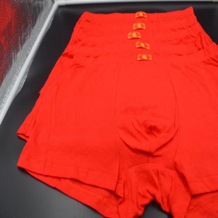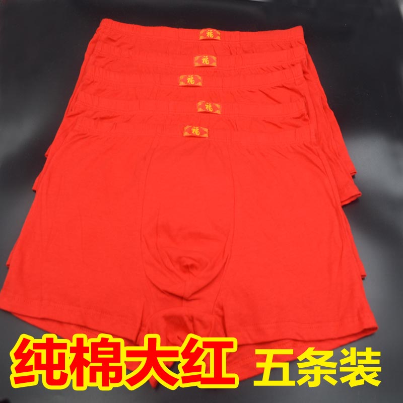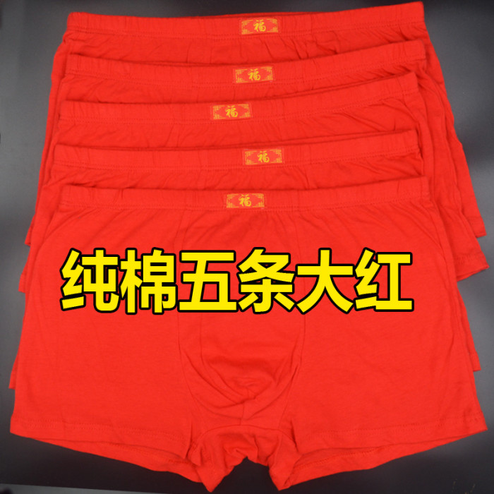 五條大紅色本命年內褲純棉男士平角紅色內褲全棉中腰大碼男平角褲