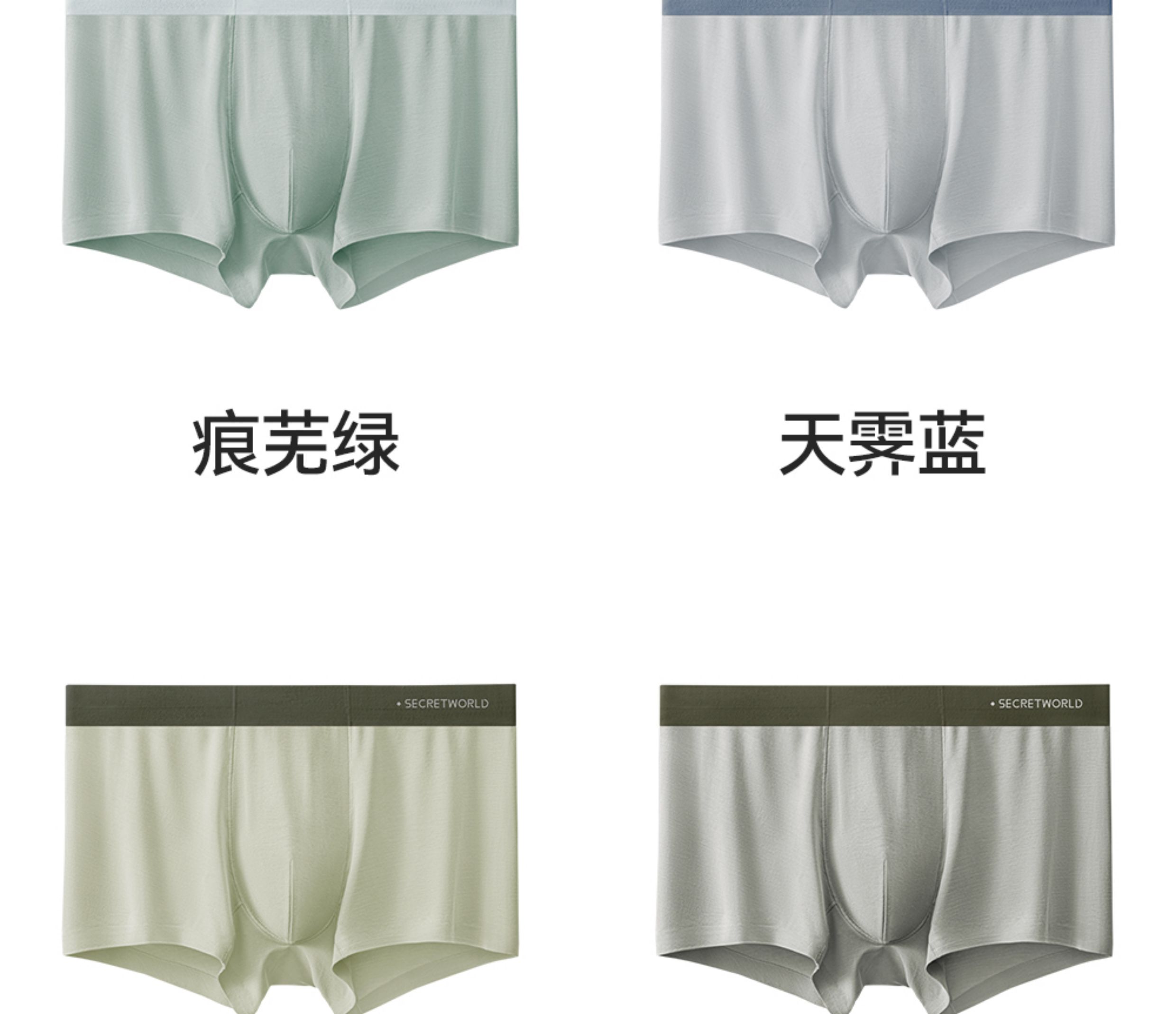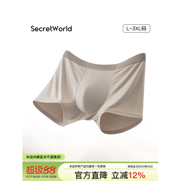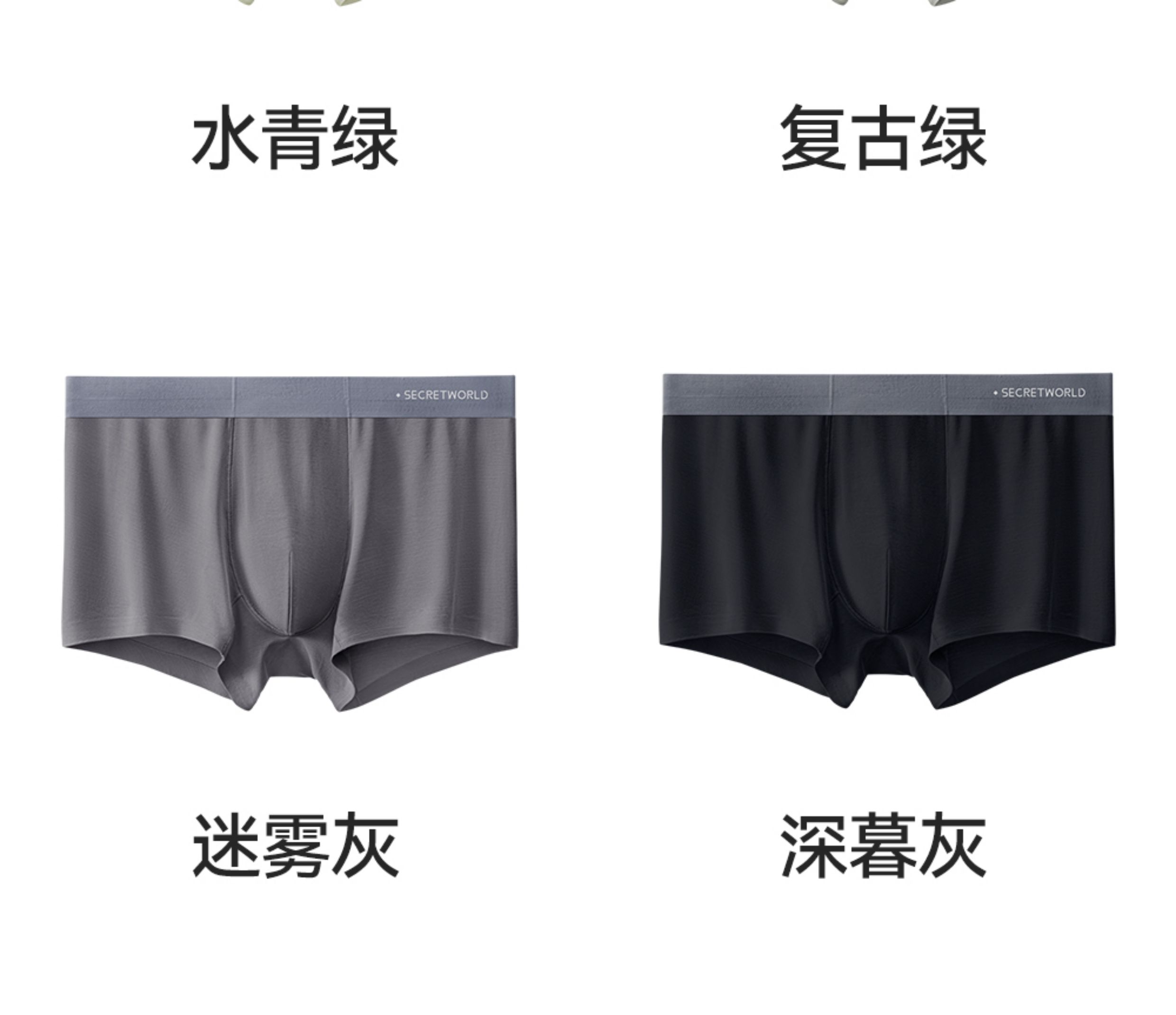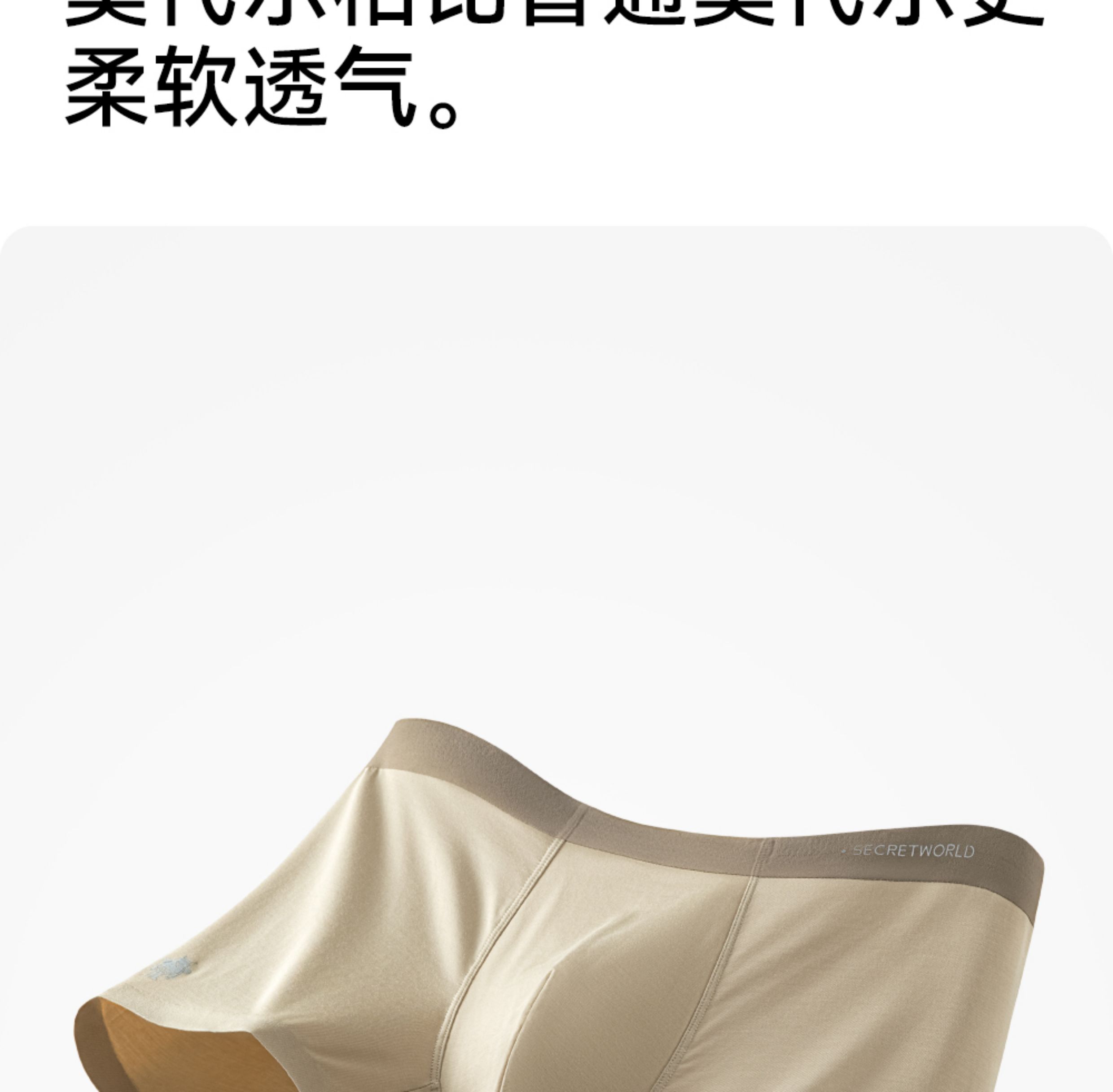 SecretWorld單條裝60支莫代爾男士內褲平角褲衩透氣純色無痕簡約