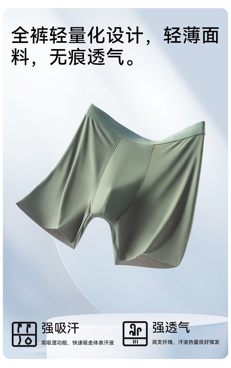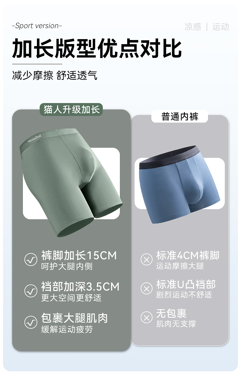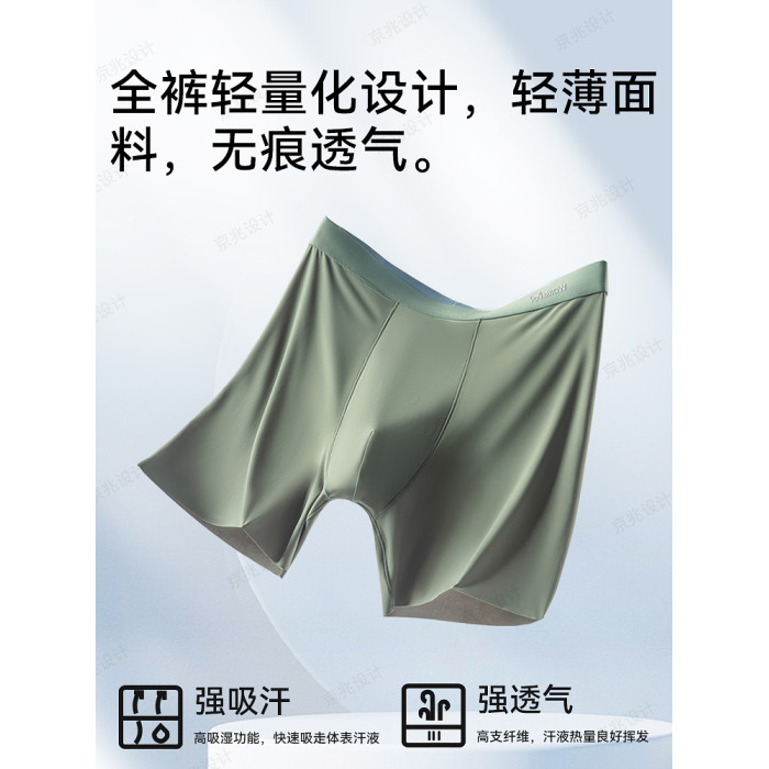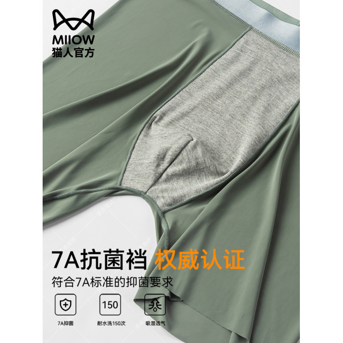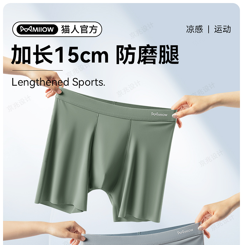 貓人冰絲男士內褲加長款防磨腿無痕運動跑步透氣大碼薄款平角褲衩