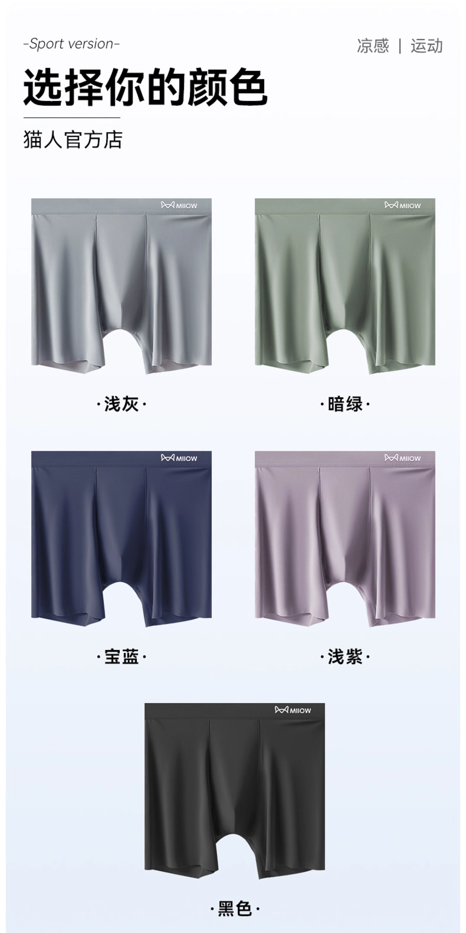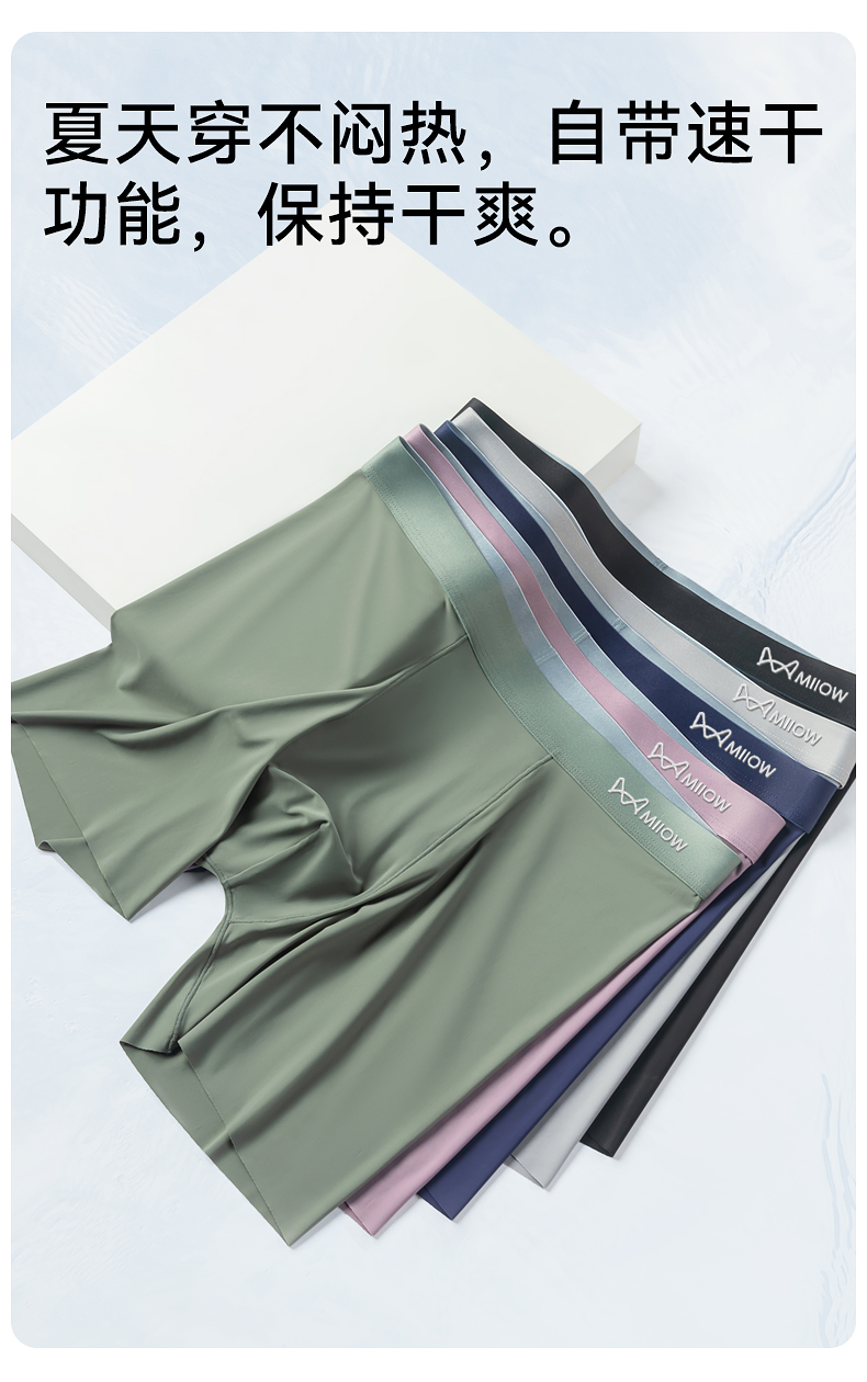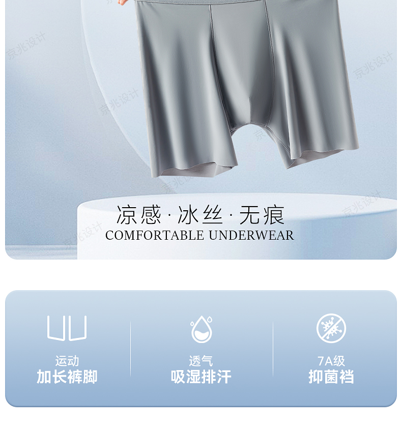 貓人冰絲男士內褲加長款防磨腿無痕運動跑步透氣大碼薄款平角褲衩