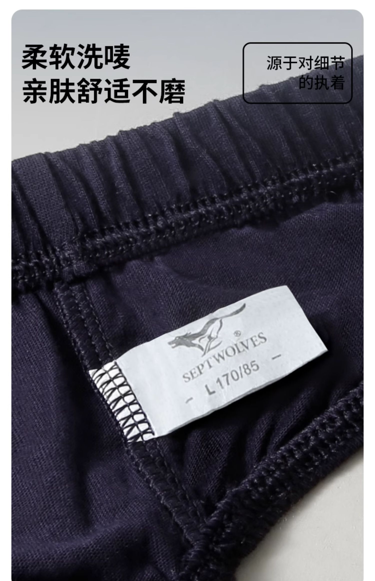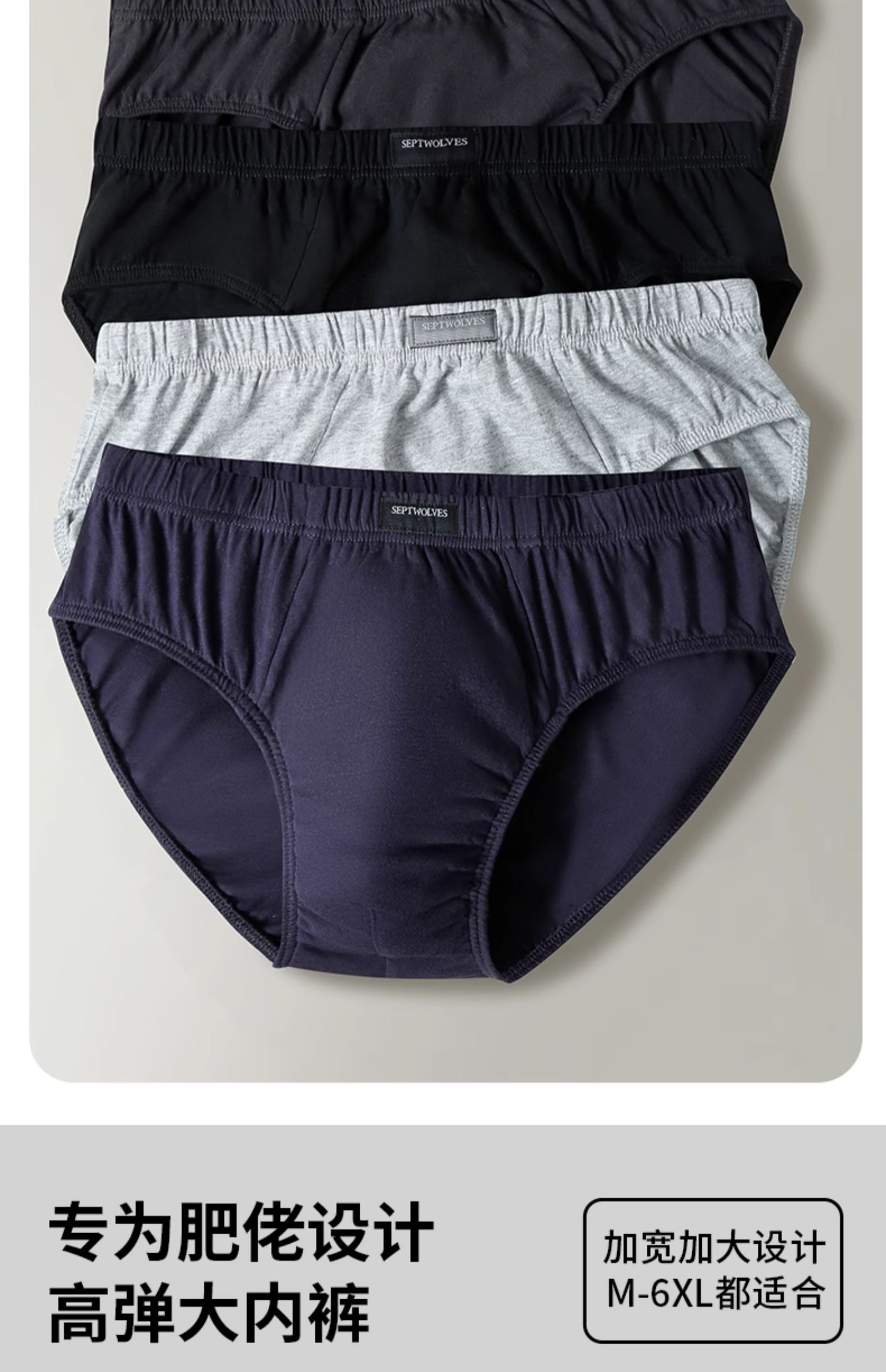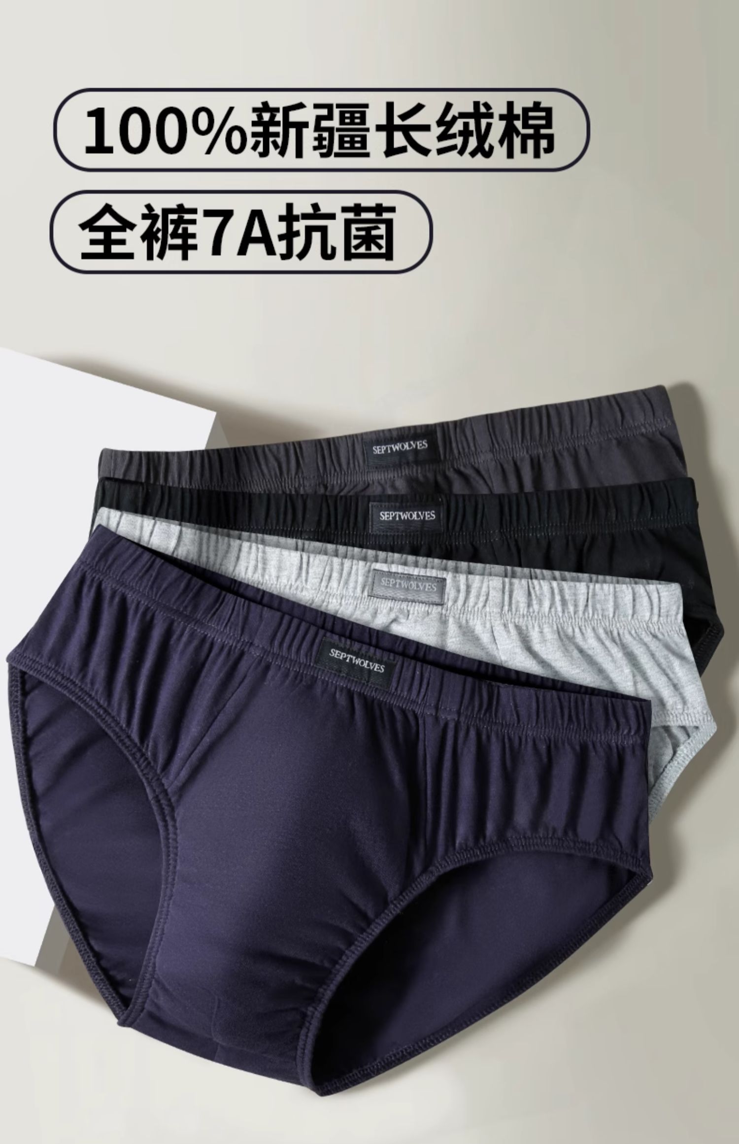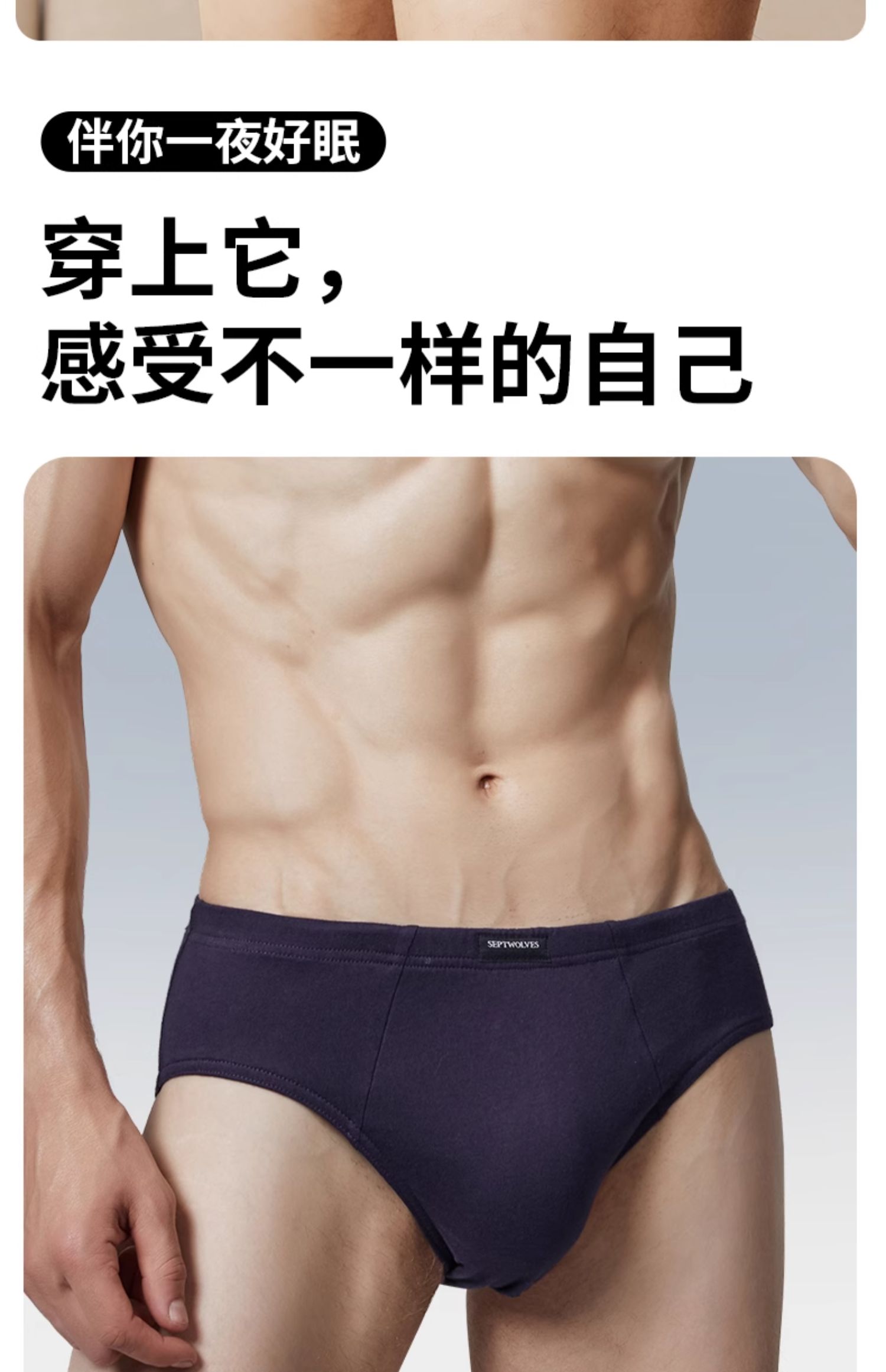 七匹狼男士純棉三角內褲男款抗菌全棉底褲中老年人透氣短褲頭薄款