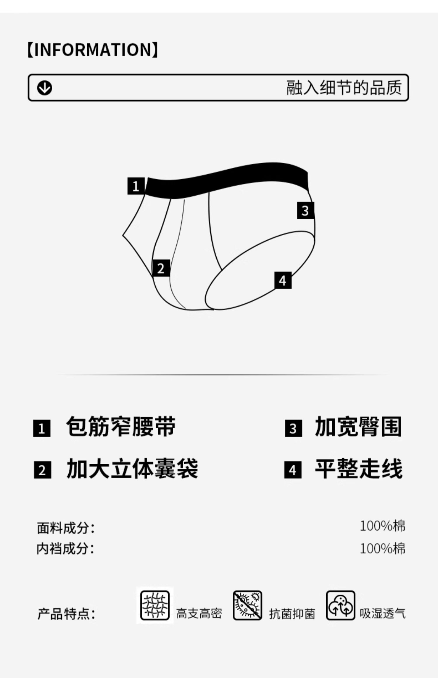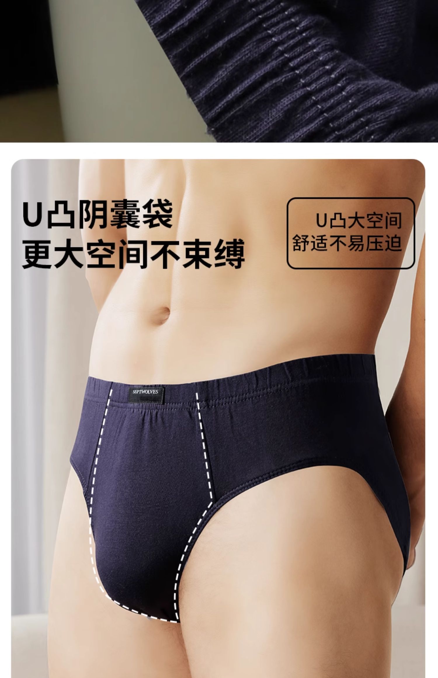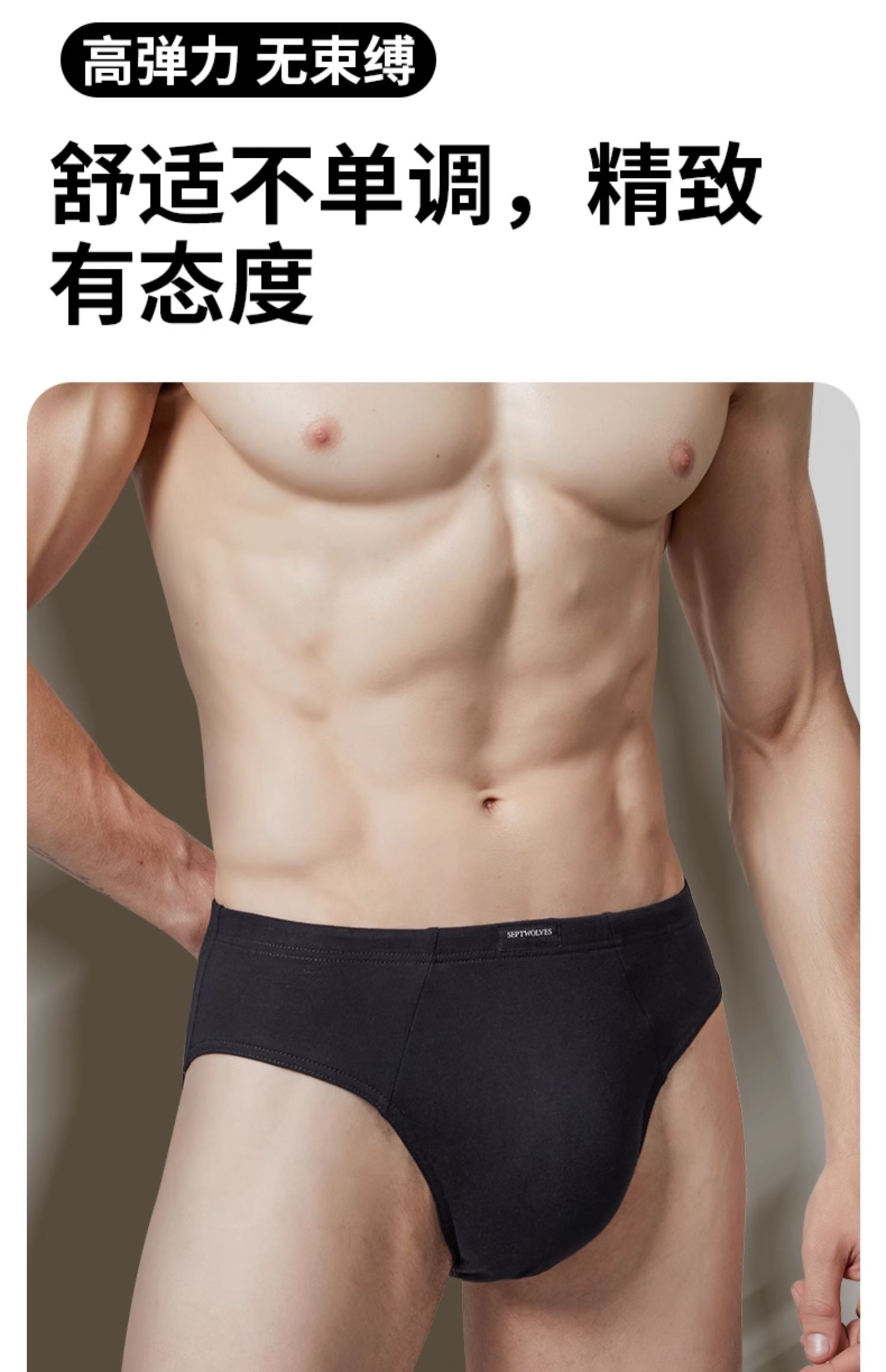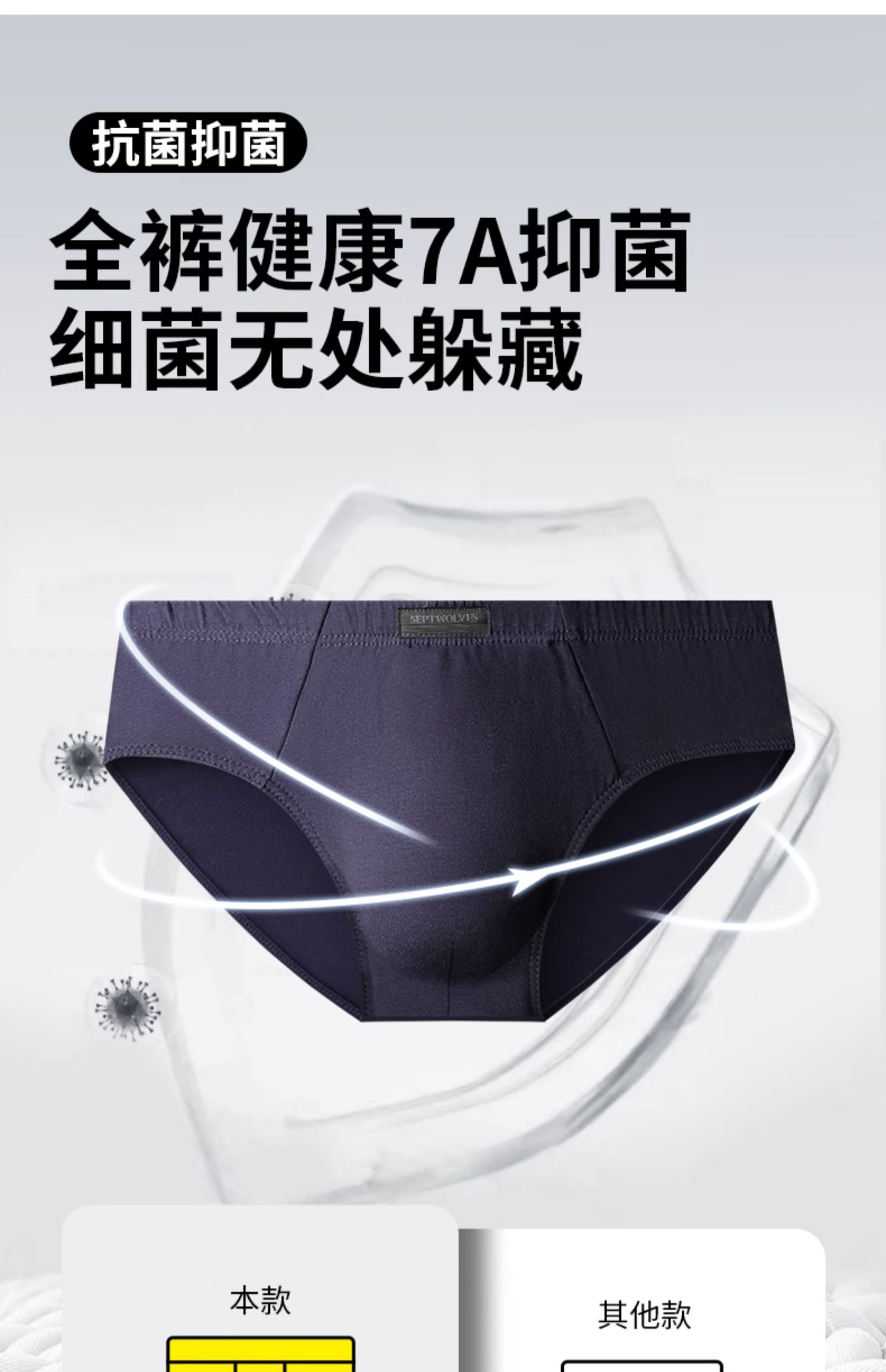 七匹狼男士純棉三角內褲男款抗菌全棉底褲中老年人透氣短褲頭薄款
