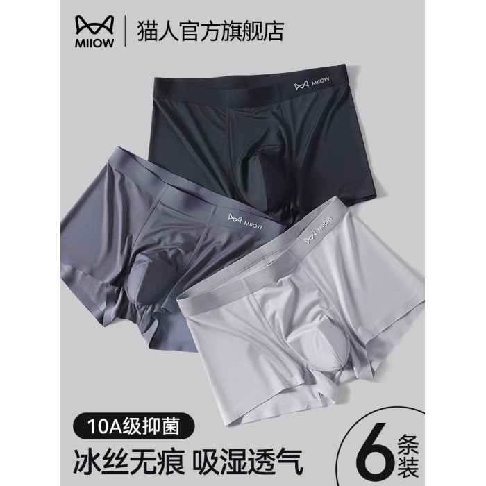 貓人男士內褲男生冰絲無痕四角褲2025新款夏季透氣平角短褲衩男款