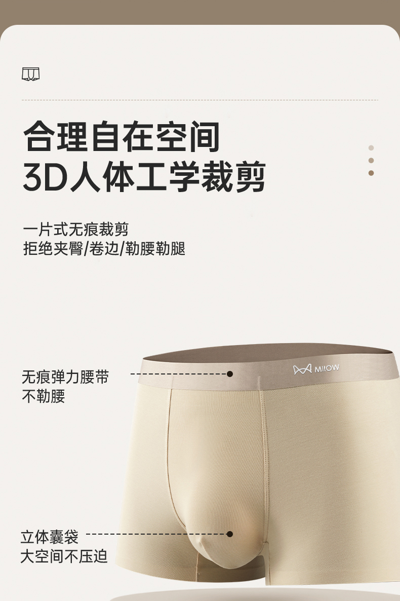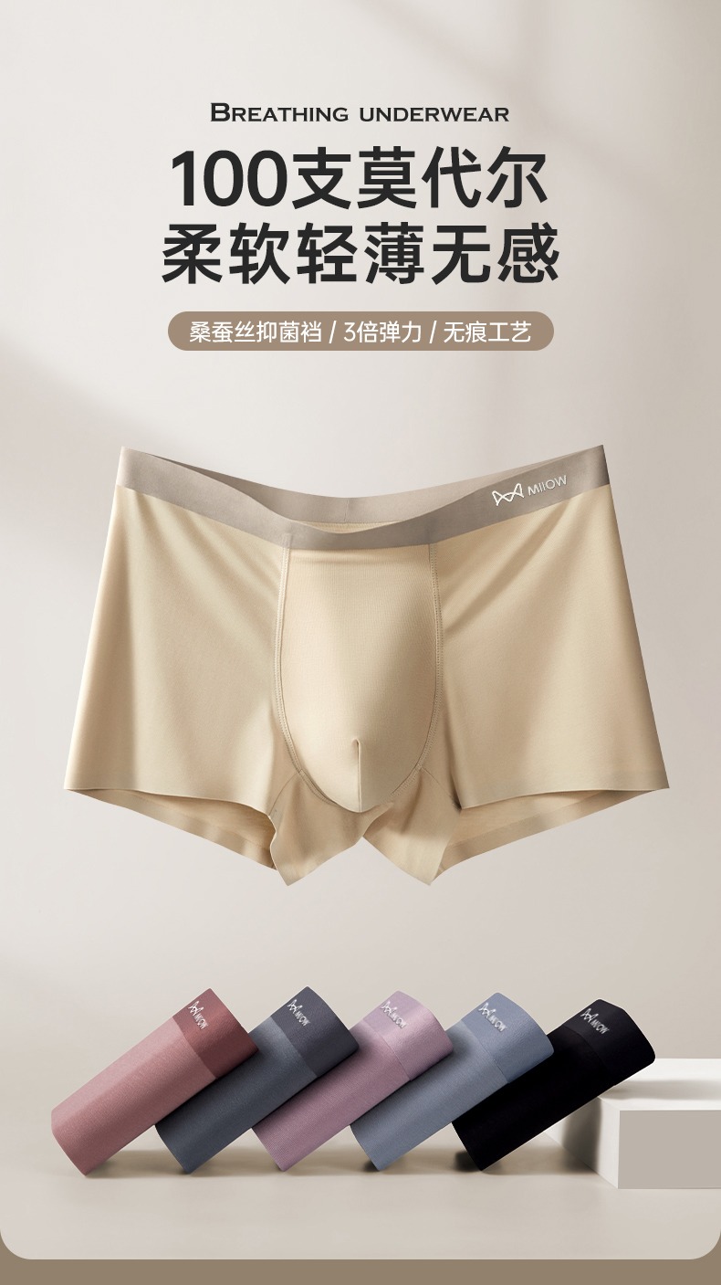 貓人男士內褲2025新款莫代爾無痕抗菌透氣四角平角短褲衩大碼褲頭