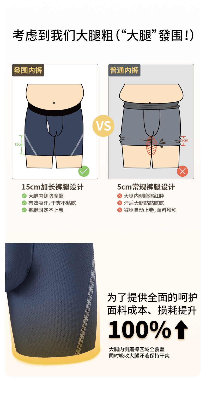 發圍男士內褲大碼貼合網眼加大短褲日常胖子加長防磨腿運動內褲