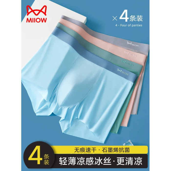 貓人冰絲內褲男士薄款無痕夏季運動透氣涼感大碼短褲男生四角褲衩