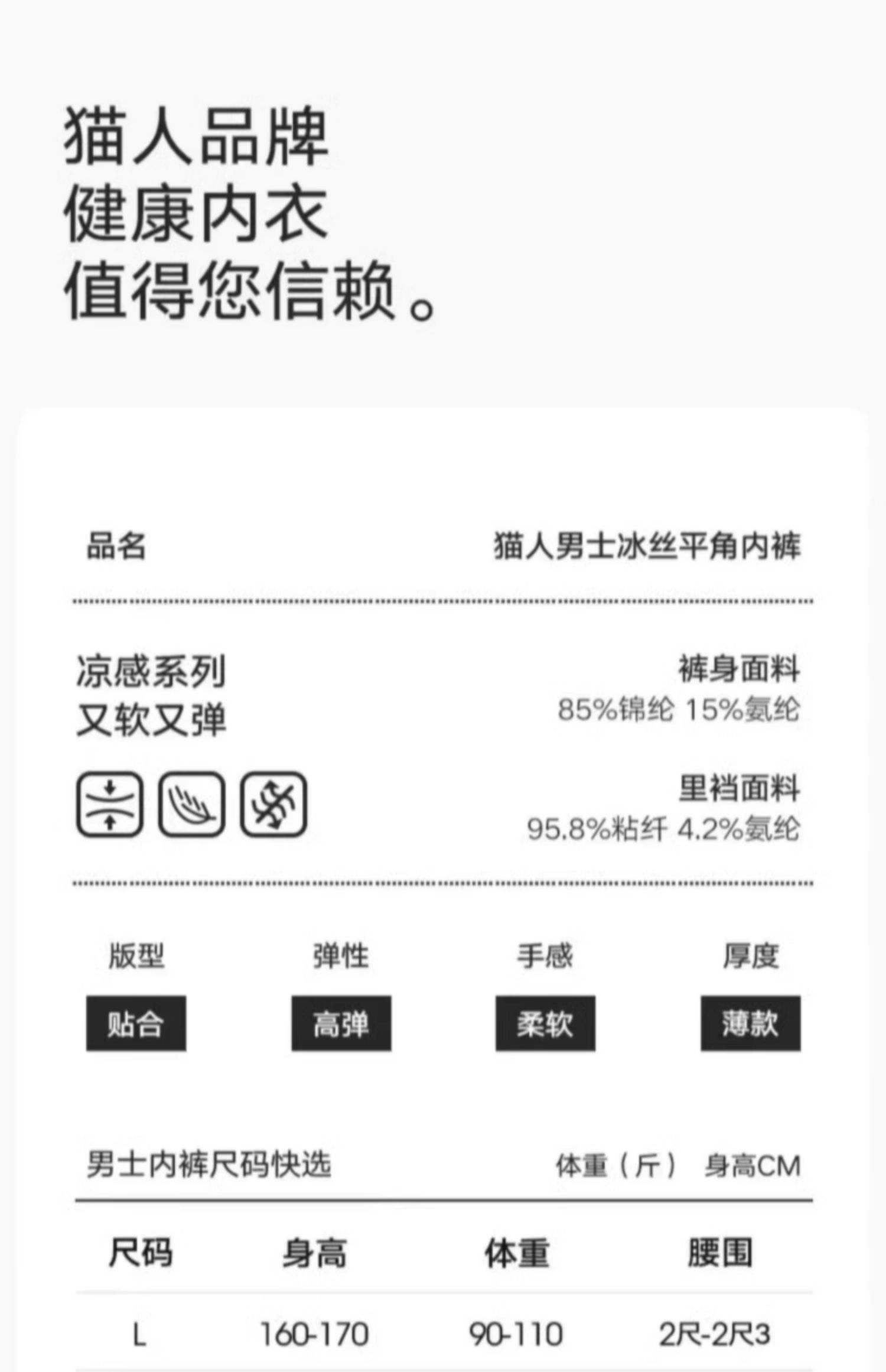 | 襠部材質成分 | 粘膠纖維(粘纖)95.8% 聚氨酯彈性纖維(氨綸)4.2% |