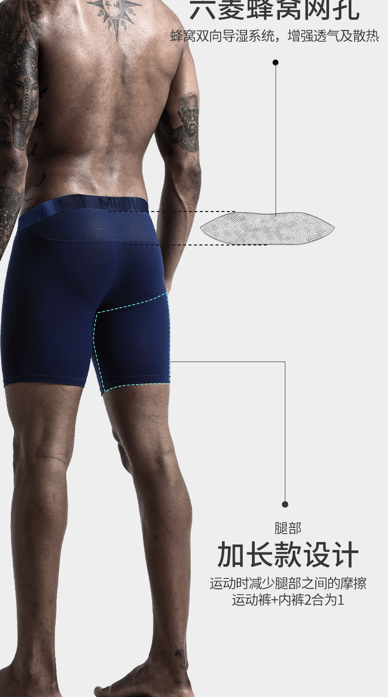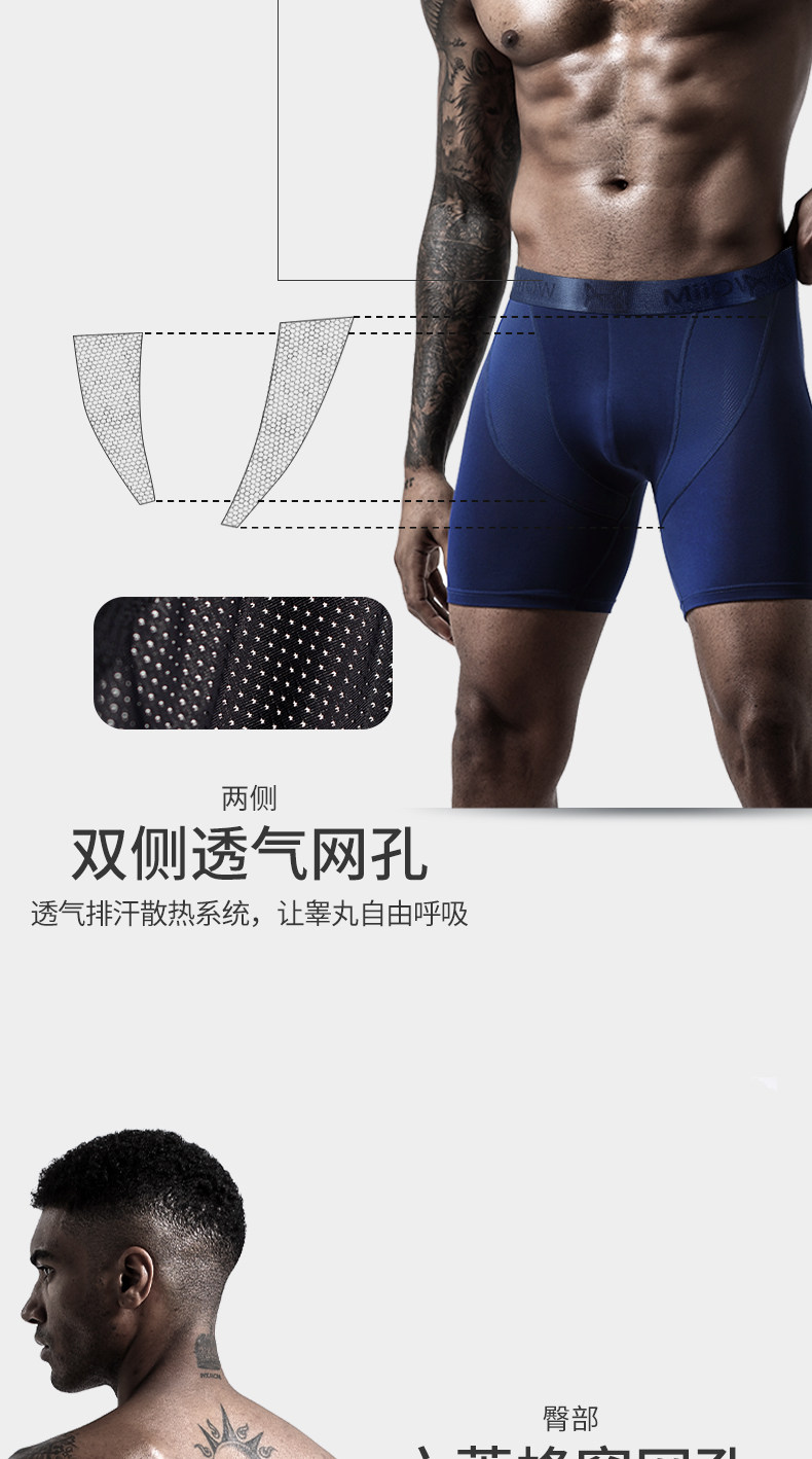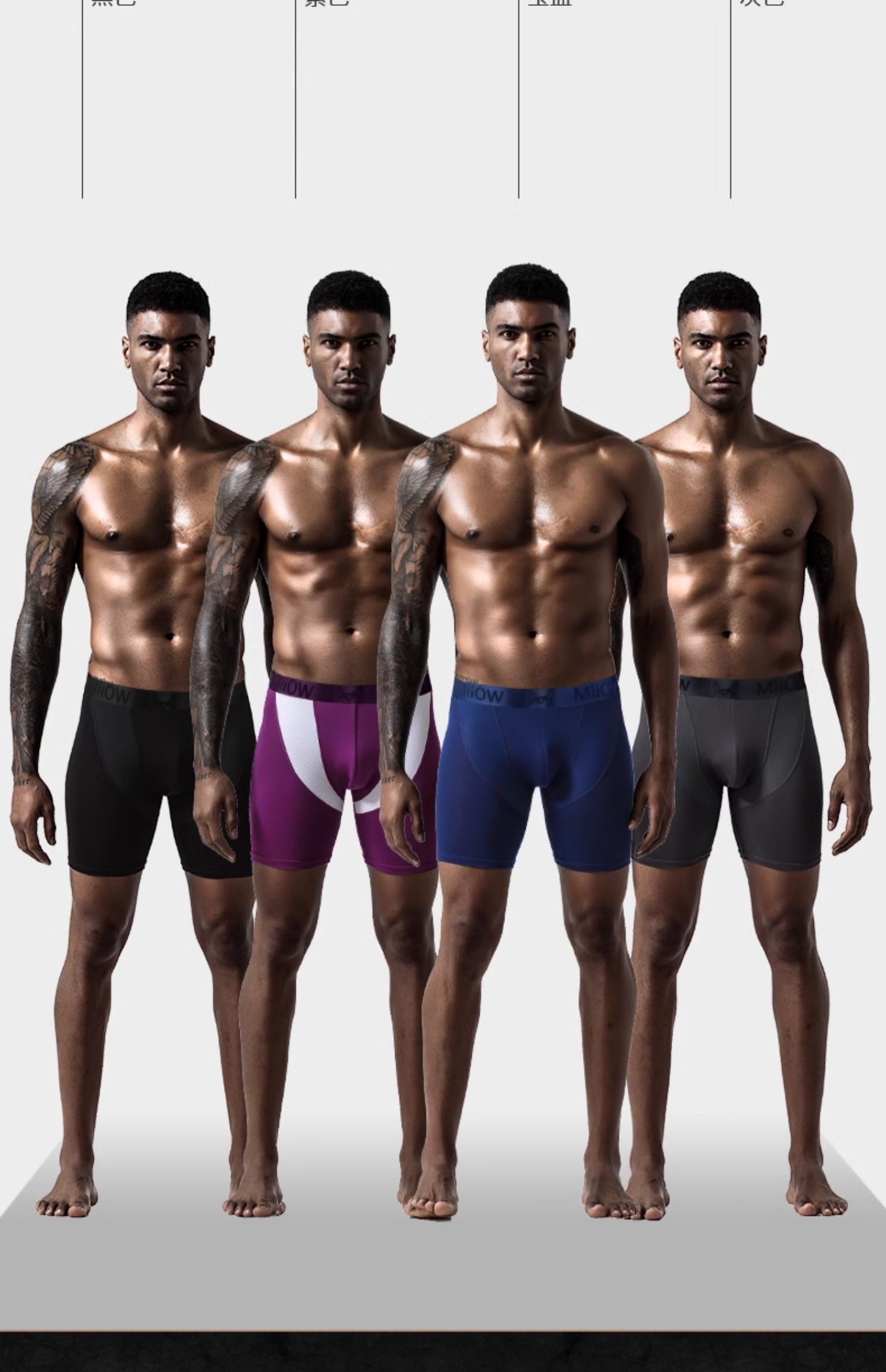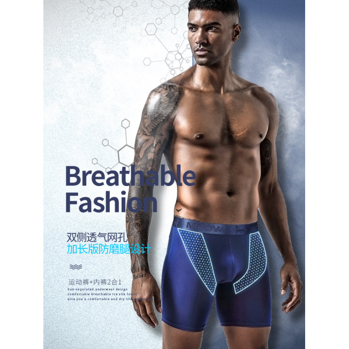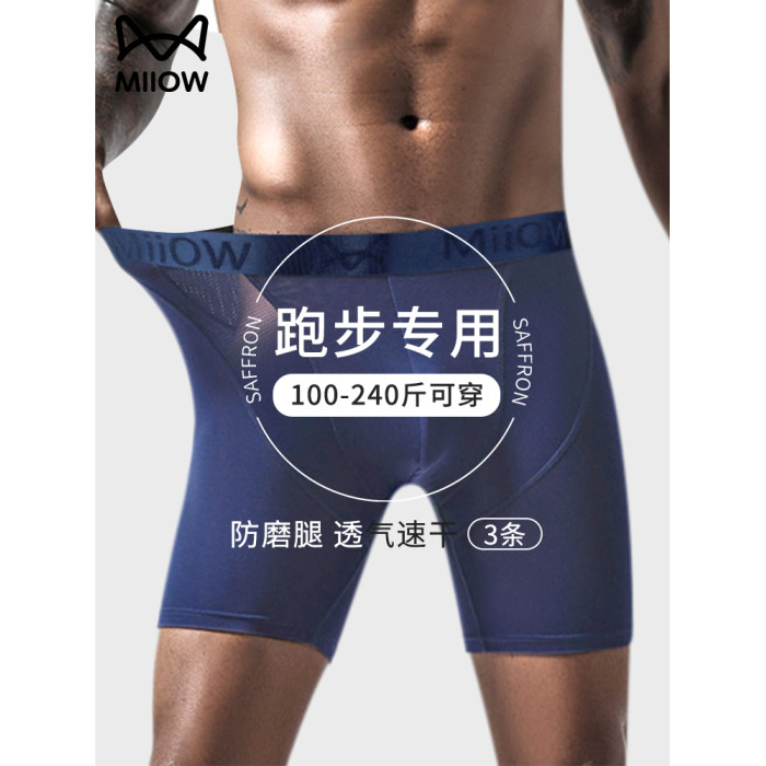 貓人男士加長運動內褲男冰絲夏季四角褲防磨腿大碼無痕跑步平角褲