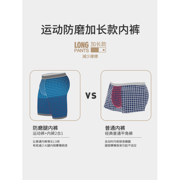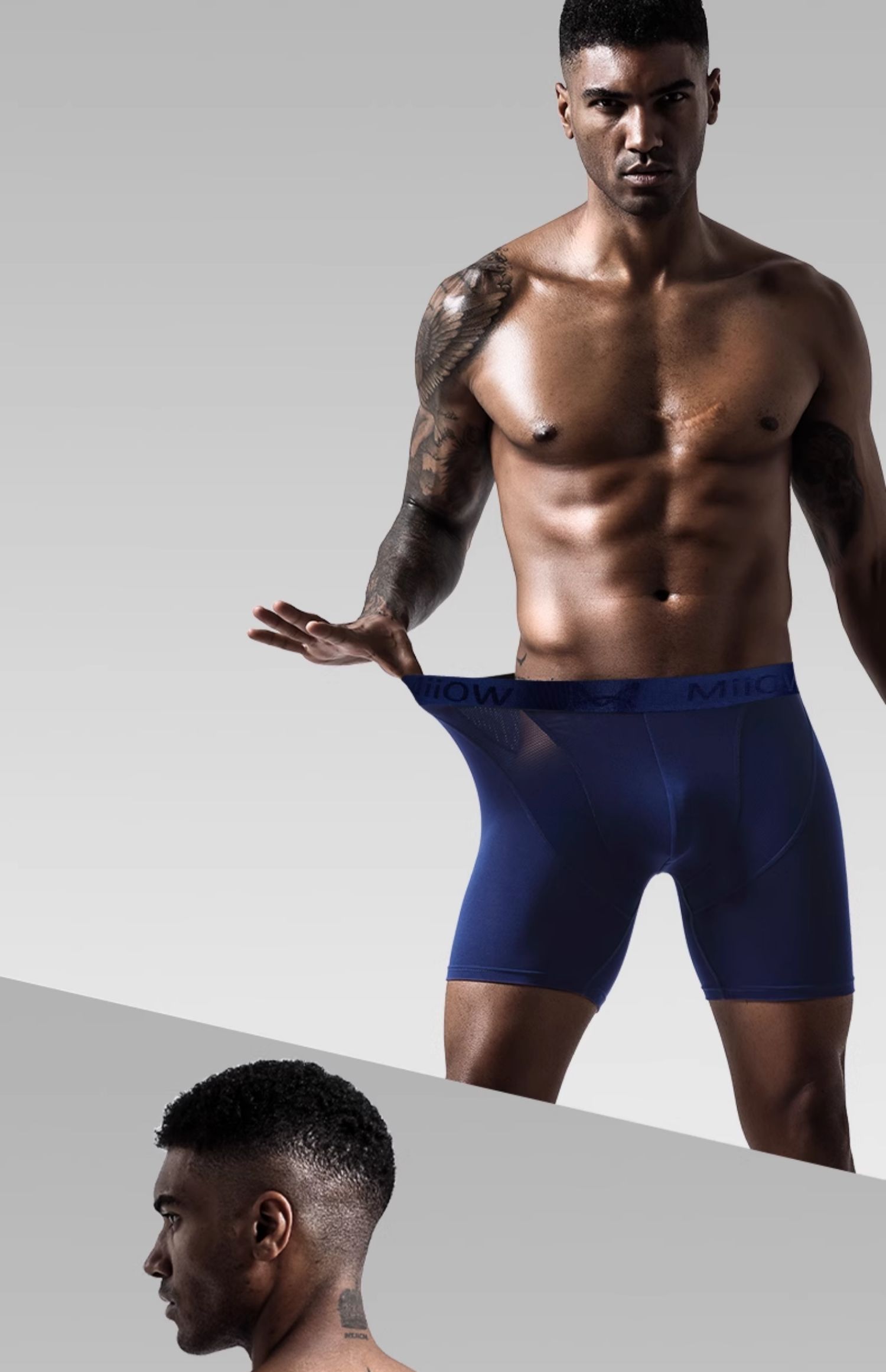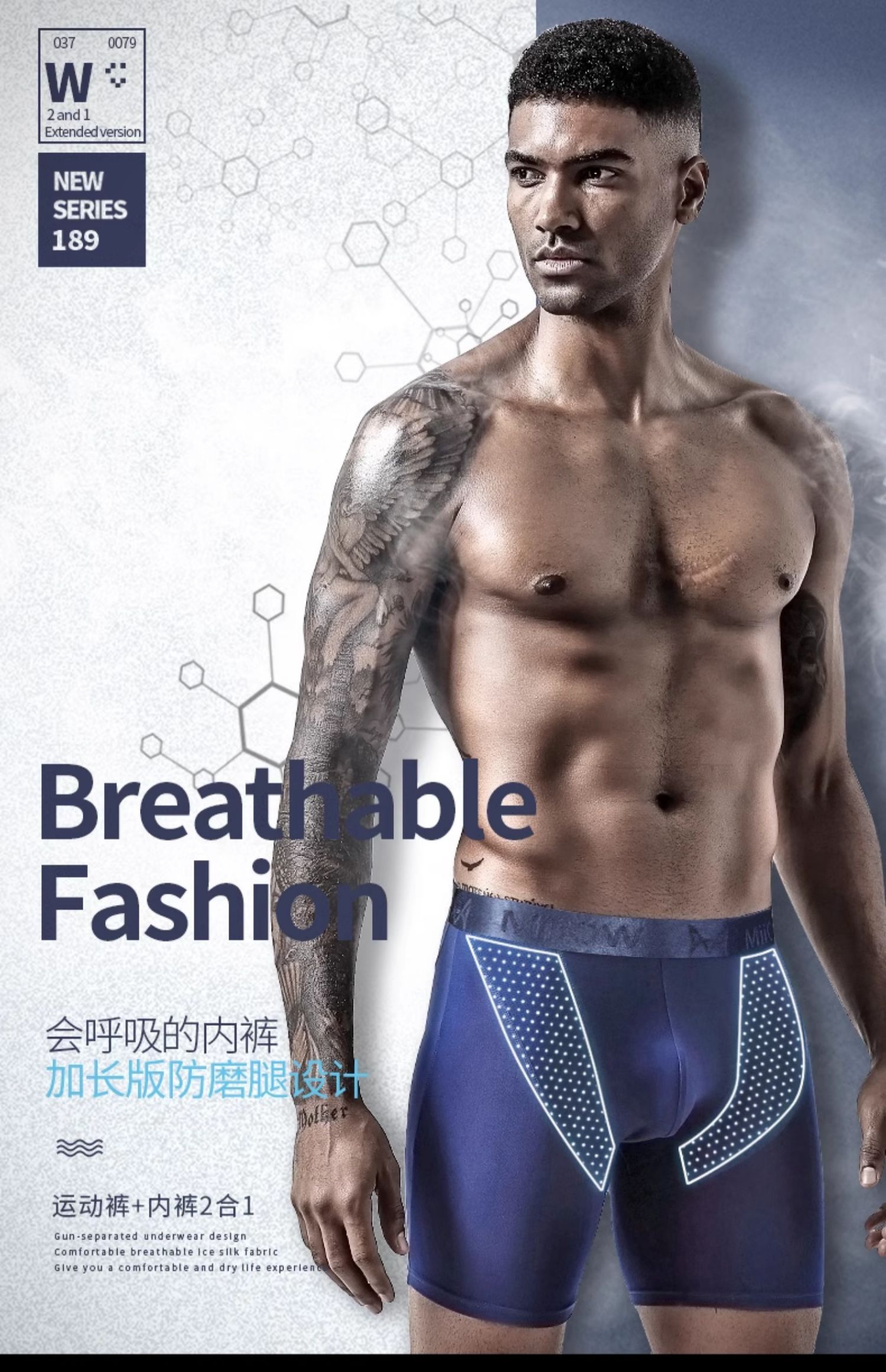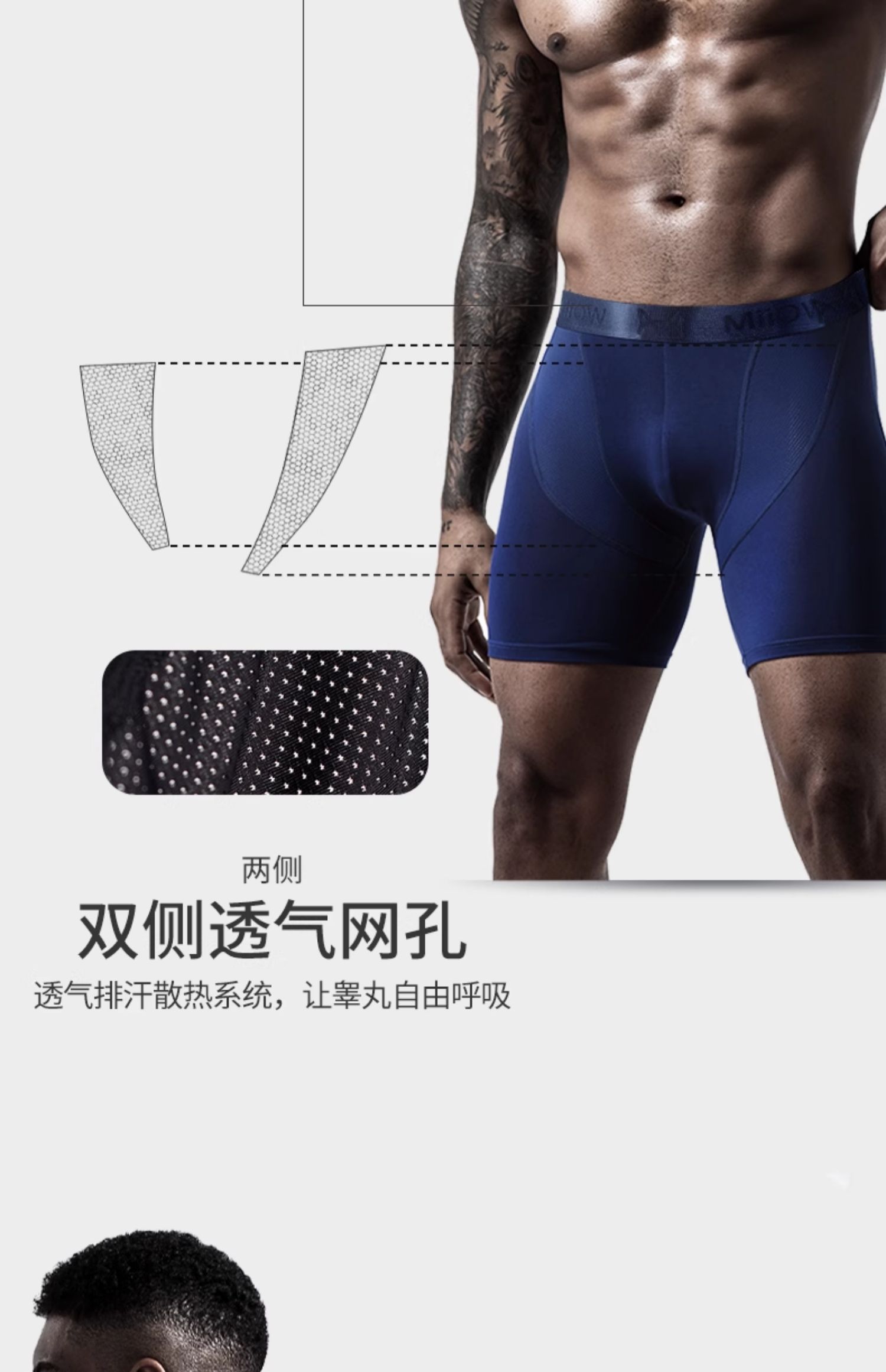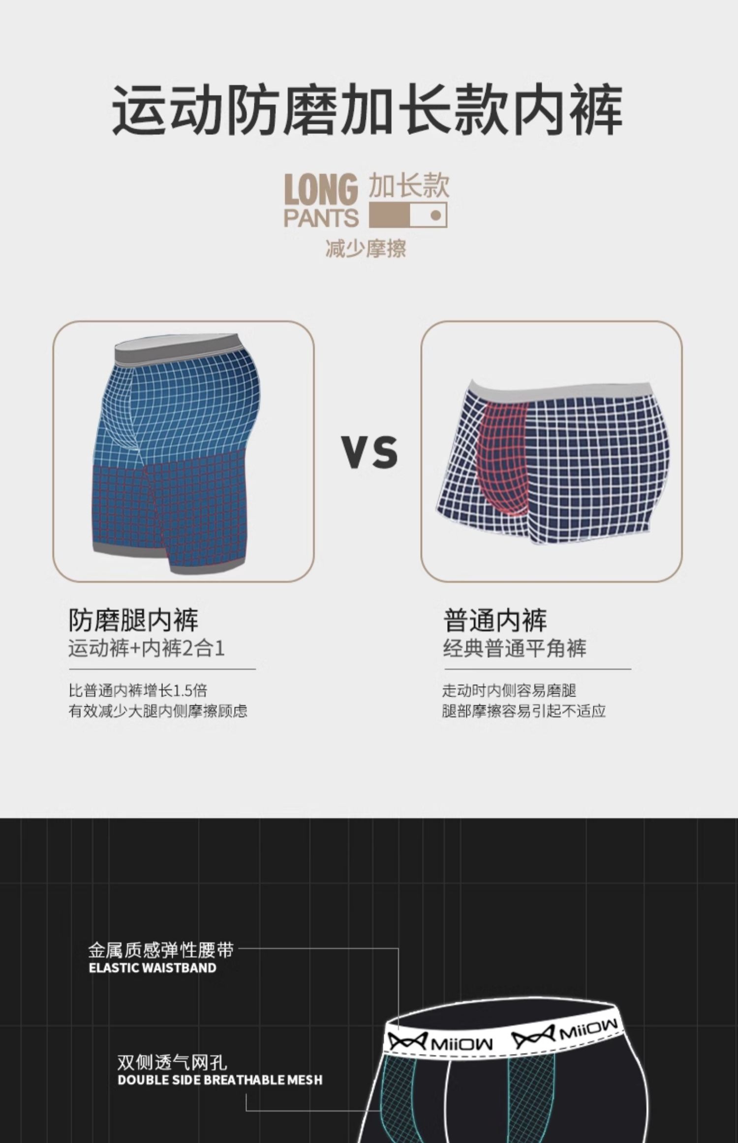 貓人男士加長運動內褲男冰絲夏季四角褲防磨腿大碼無痕跑步平角褲