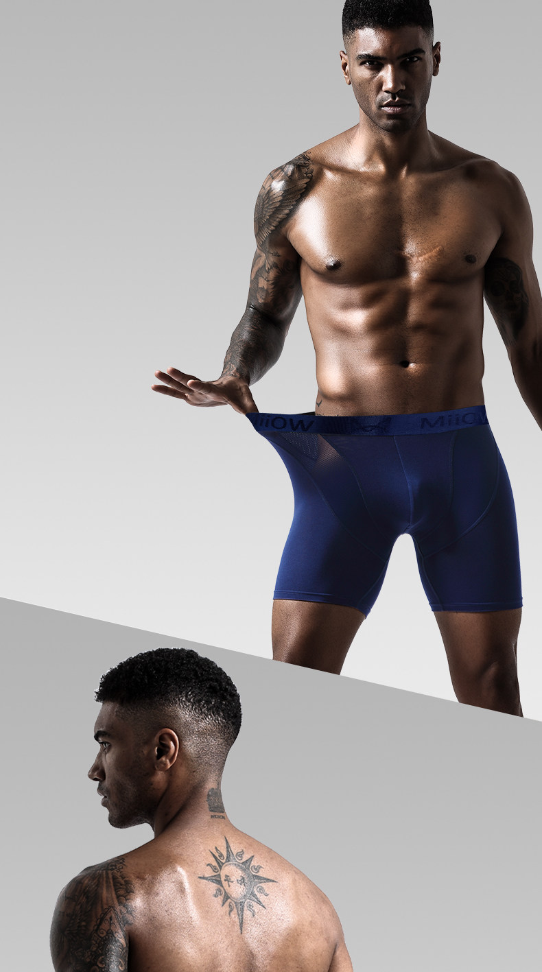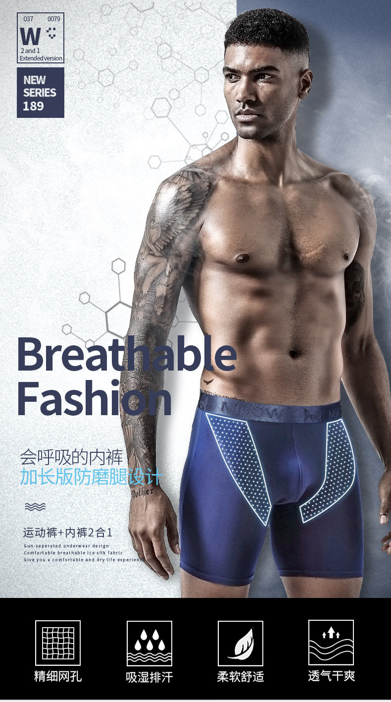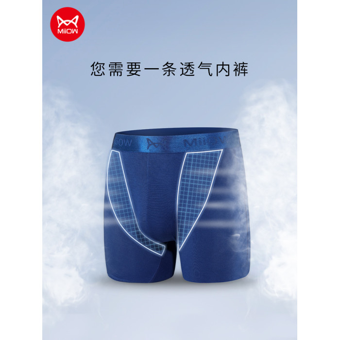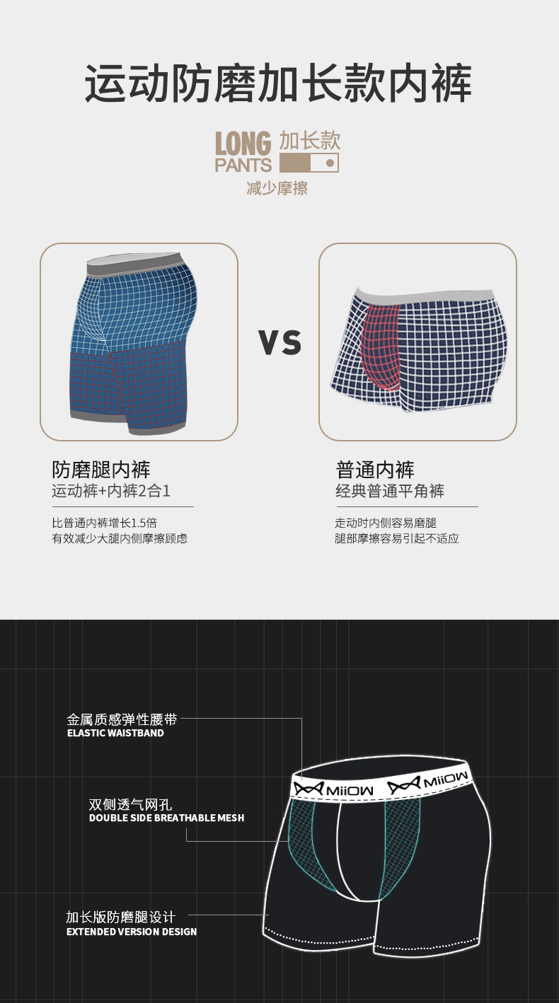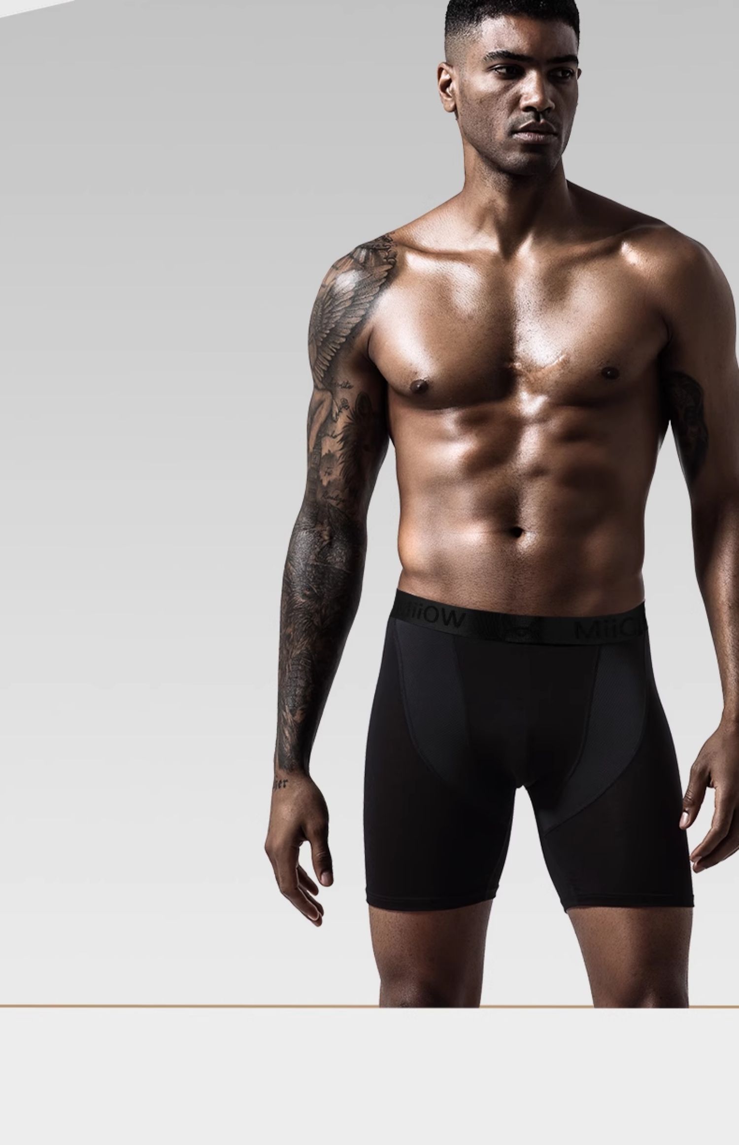 貓人男士加長運動內褲男冰絲夏季四角褲防磨腿大碼無痕跑步平角褲