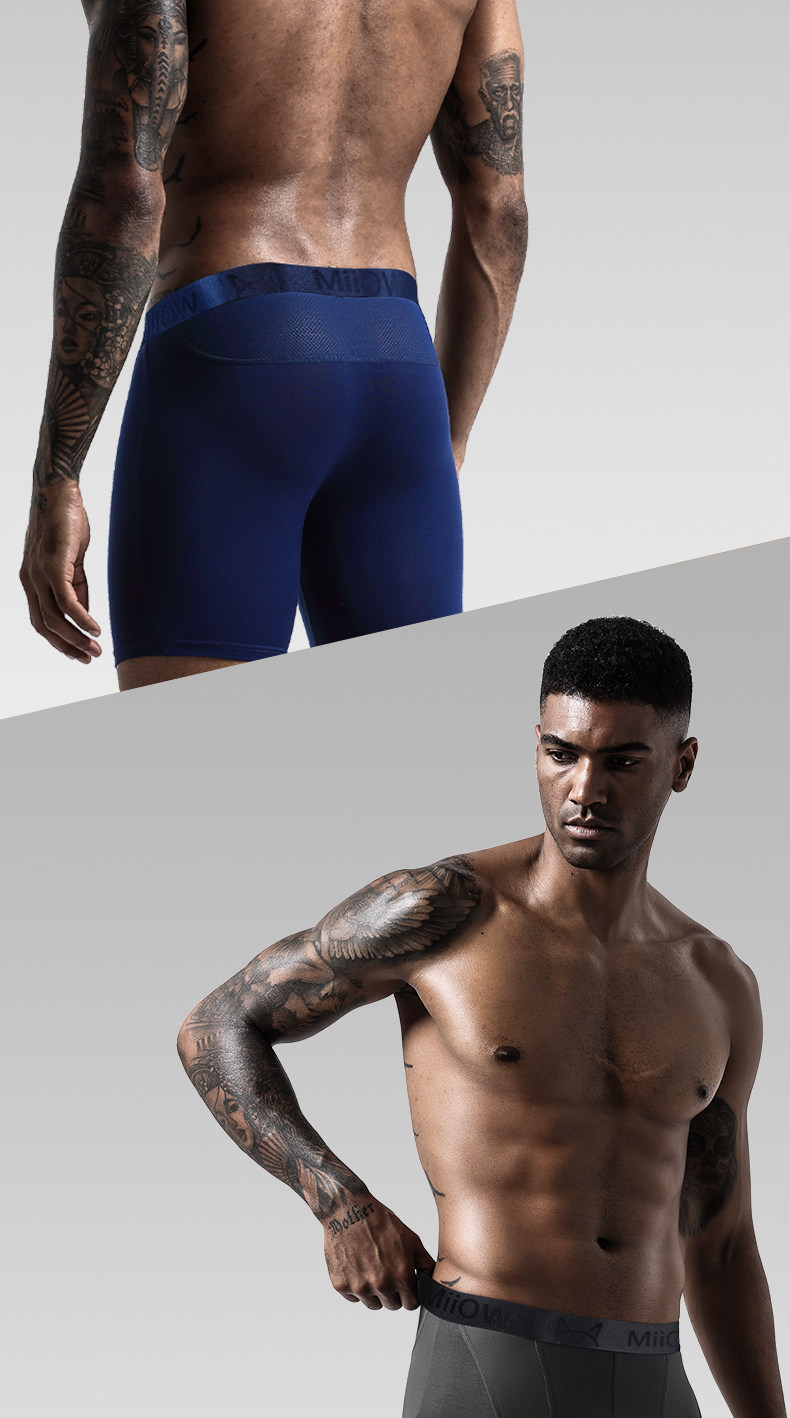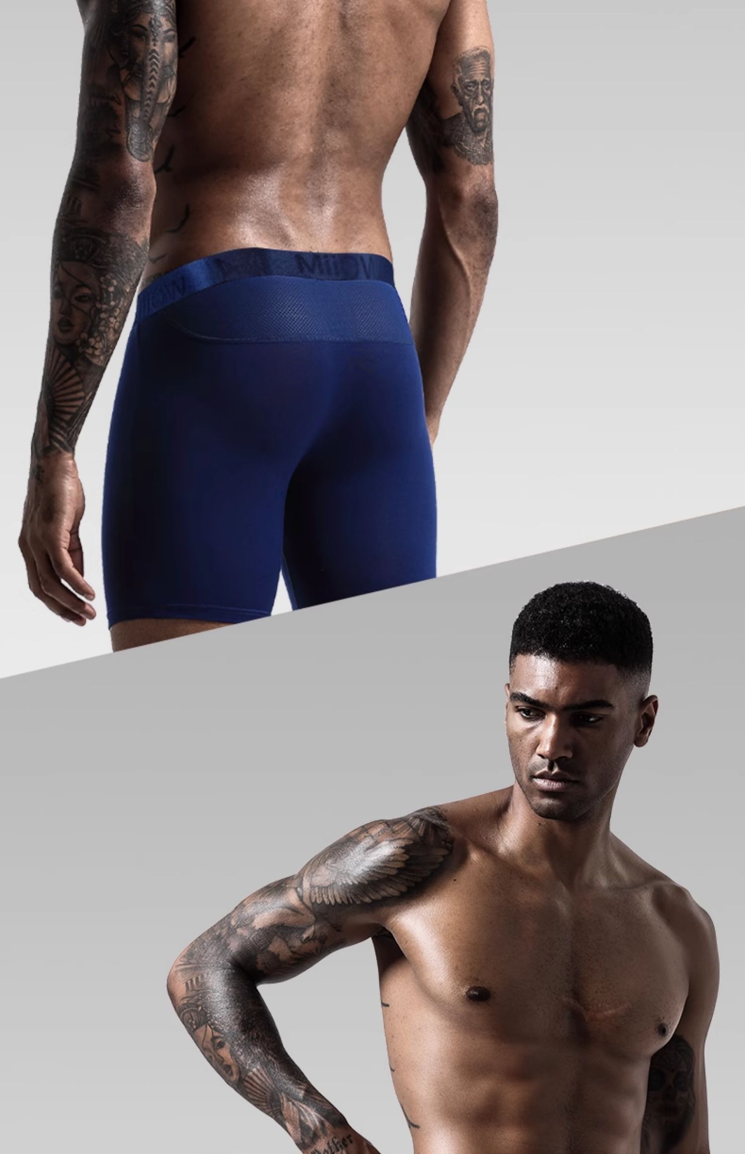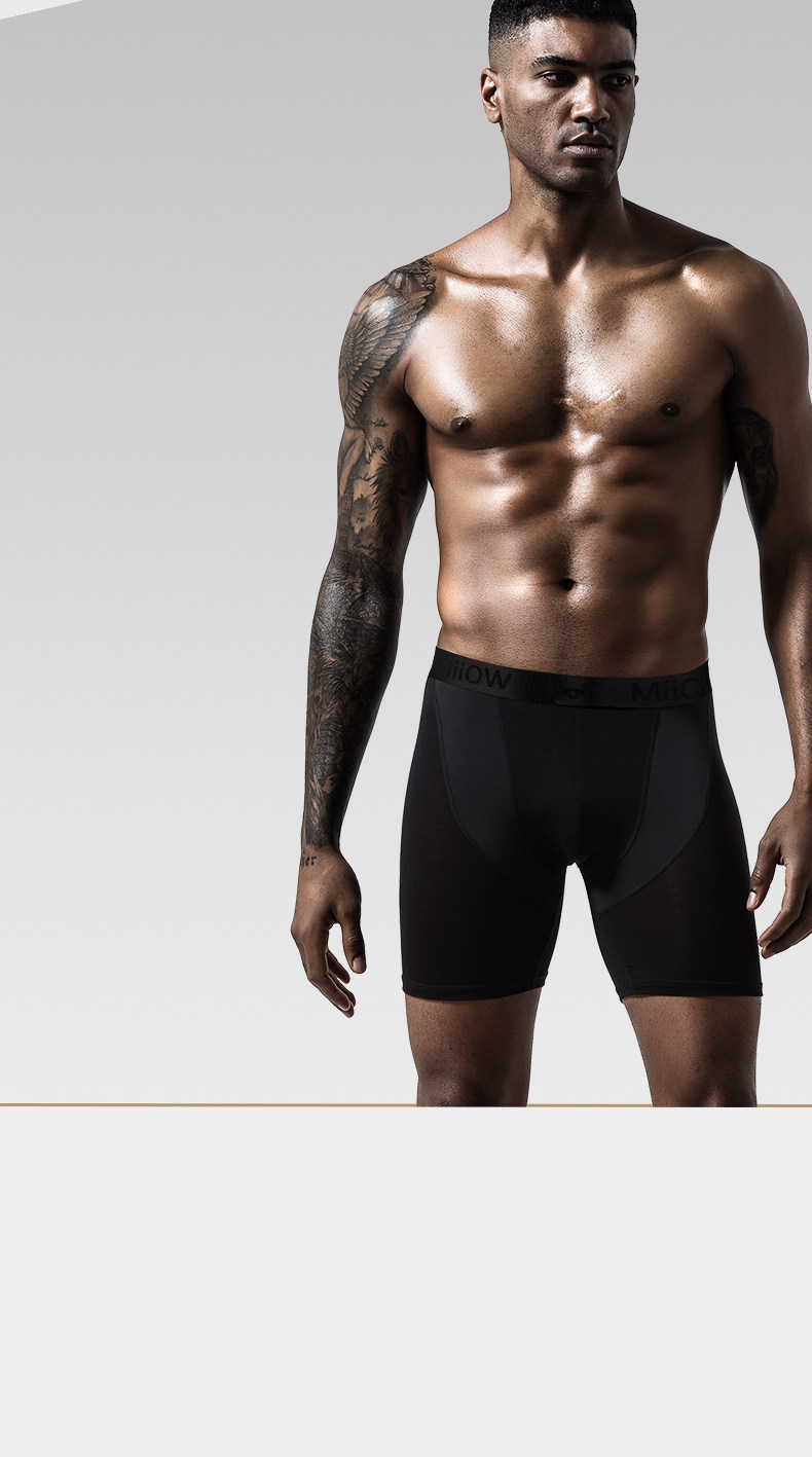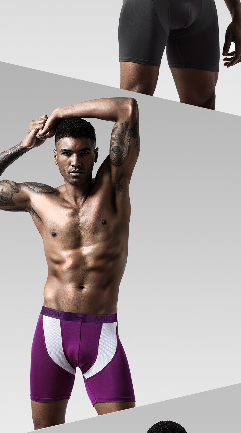 貓人男士加長運動內褲男冰絲夏季四角褲防磨腿大碼無痕跑步平角褲