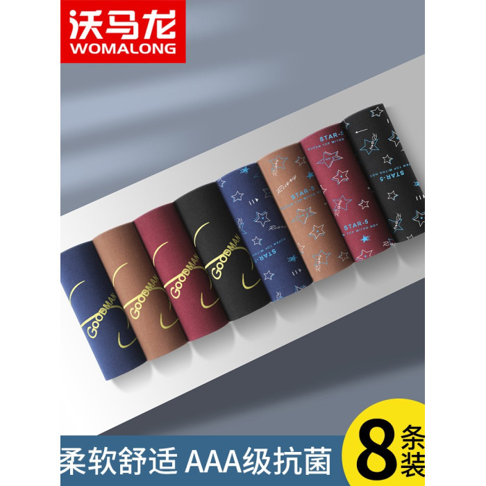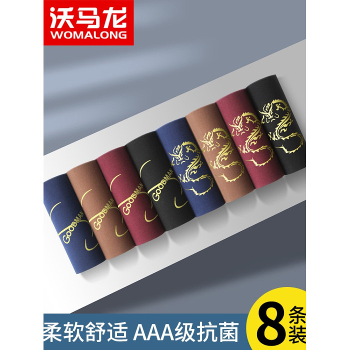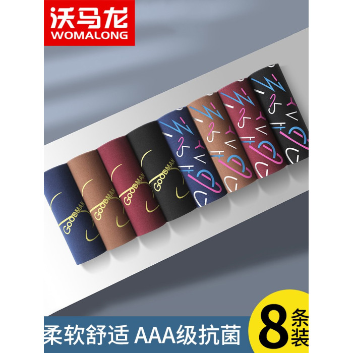 8條裝男士內褲平角褲青年時尚潮流中腰透氣男士四角褲頭春夏季