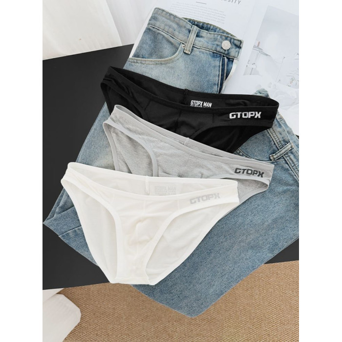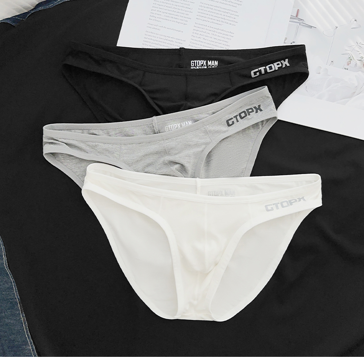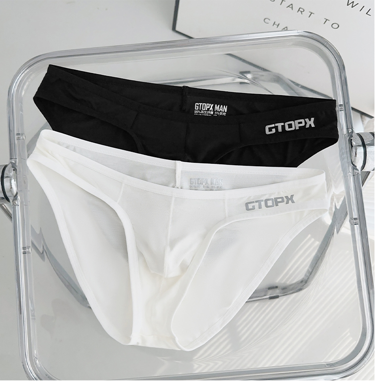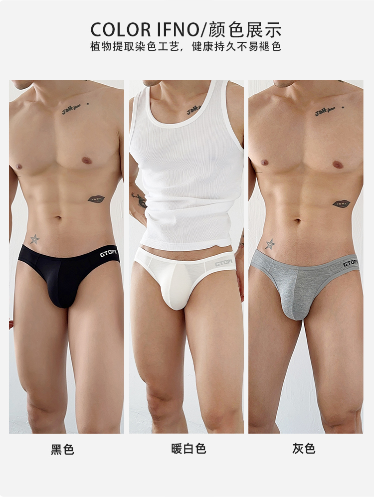 2條裝男士三角內褲低腰性感窄邊莫代爾U凸性感舒適純色底褲頭