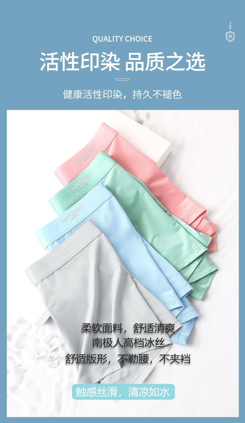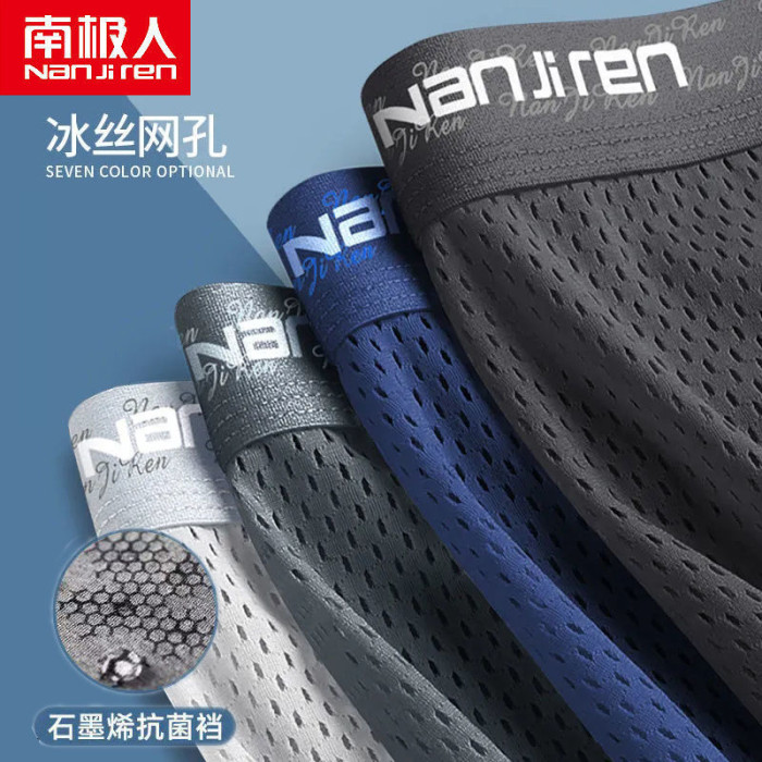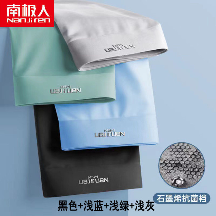 南極人男士內褲冰絲抗菌石墨夏季平角透氣薄款男生無痕短褲褲衩