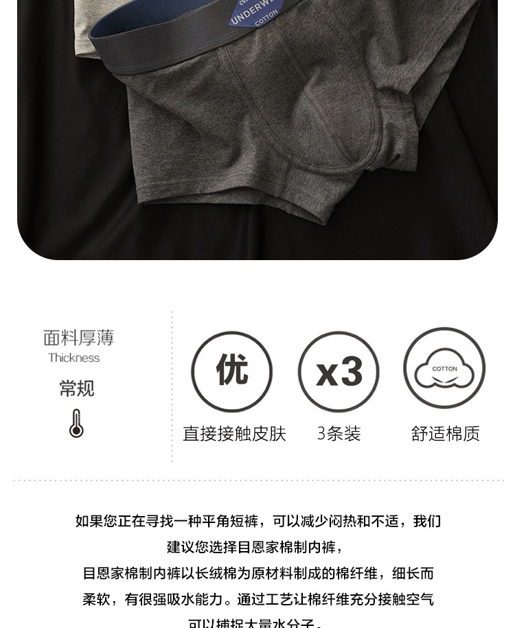 男士內褲男純棉平角褲透氣舒適親膚時尚男四角短褲潮流男生內褲