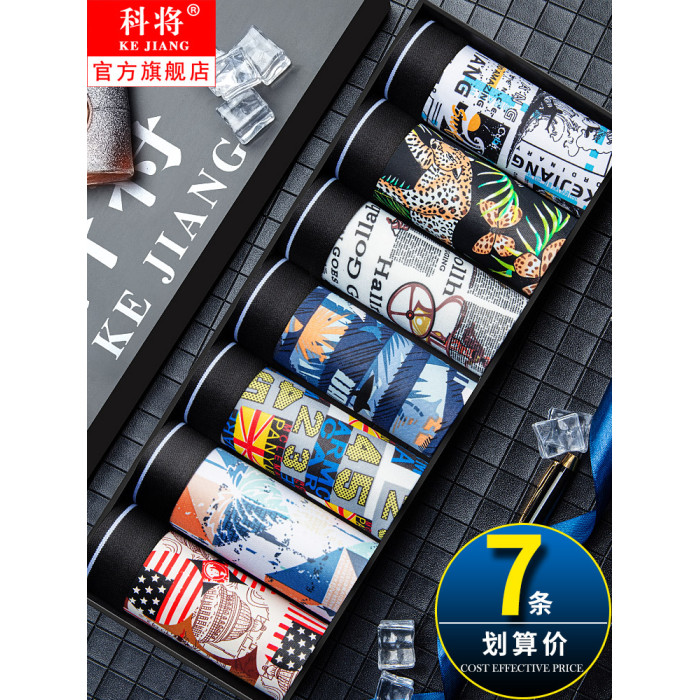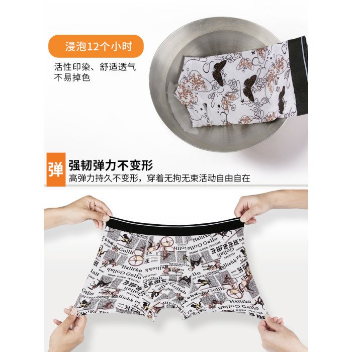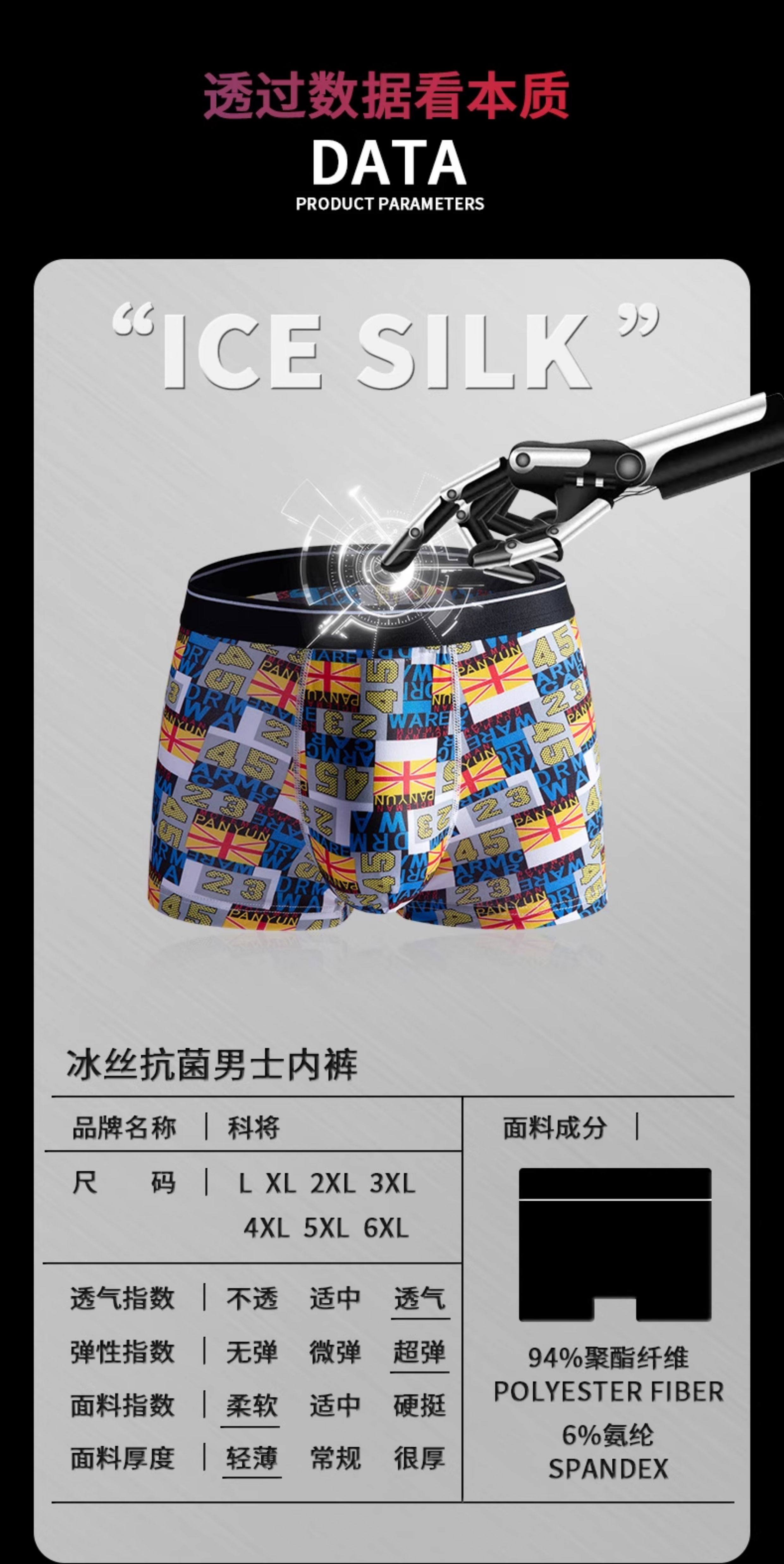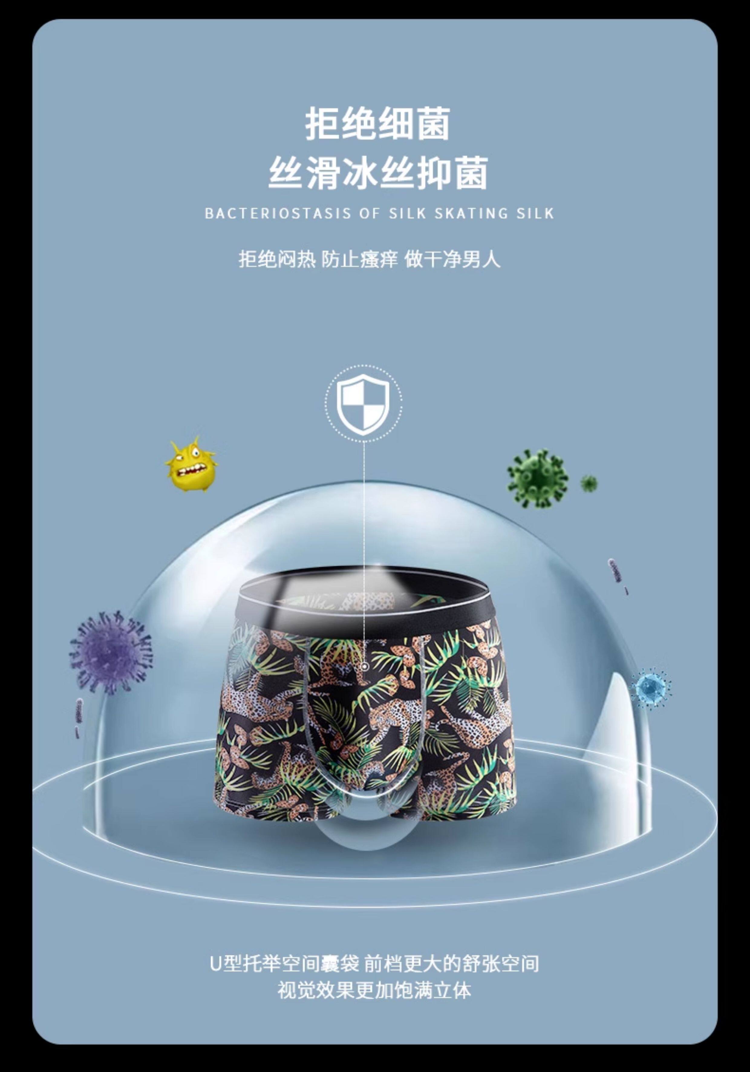 男士內褲男平角褲頭冰絲大碼寬松潮流個性青年四角短褲衩夏季薄款