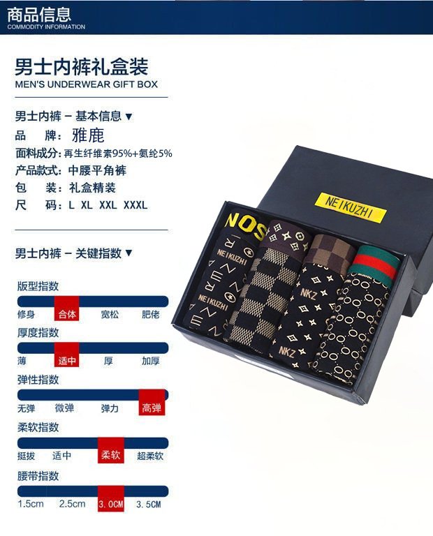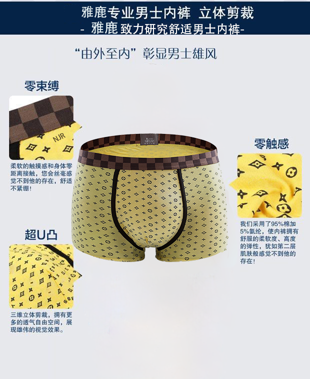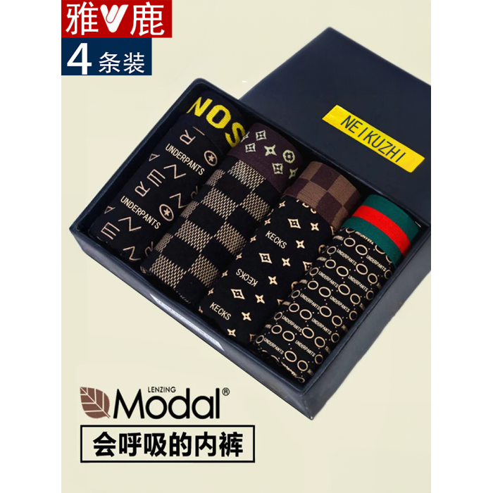 雅鹿男士內褲莫代爾純棉內褲男款石墨烯襠四角抗菌短褲衩男人全棉