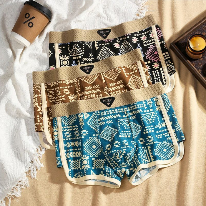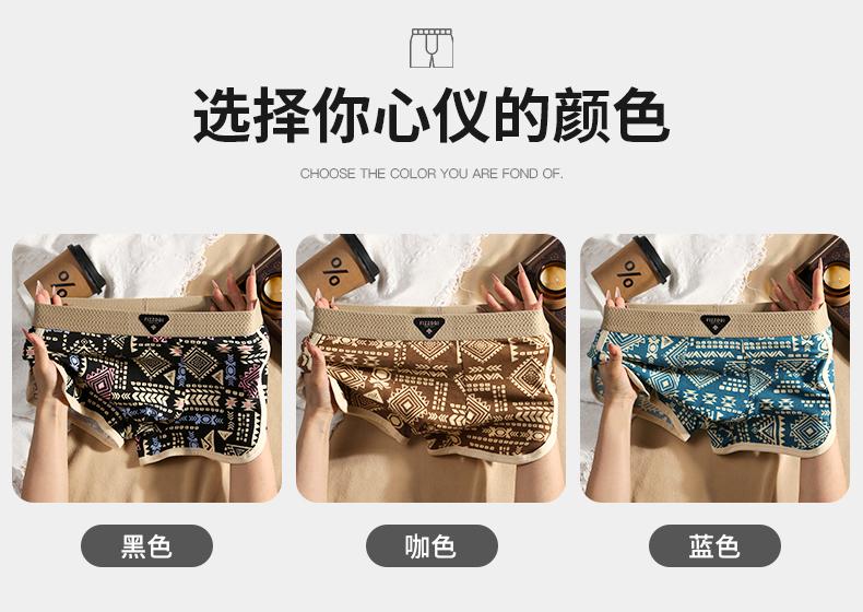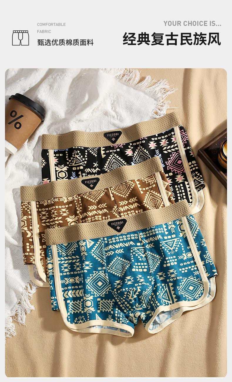 菲佐祺男士內褲10a抑菌民族復古復古純棉透氣平角褲青年潮流短褲