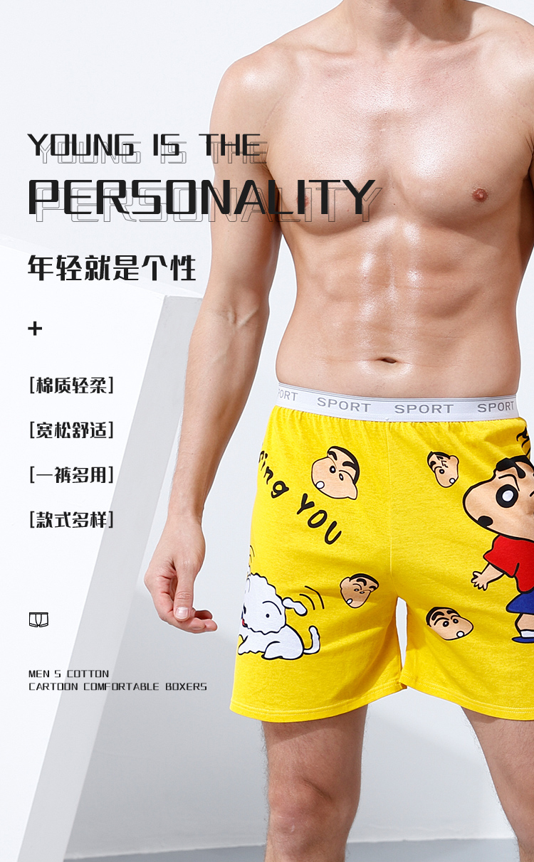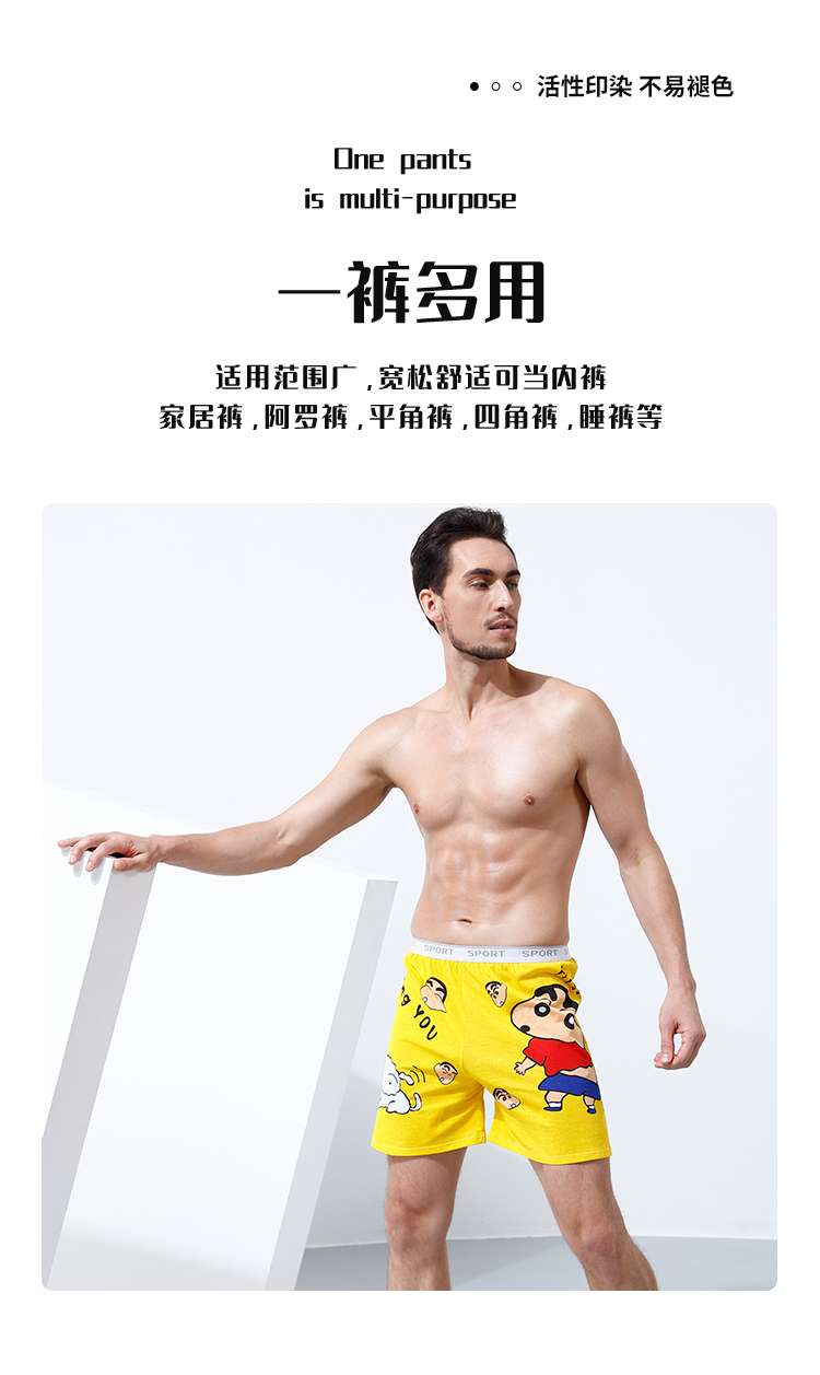 肥佬四角內褲男士動漫家居平角褲大碼中腰薄款阿羅褲卡通寬松舒適
