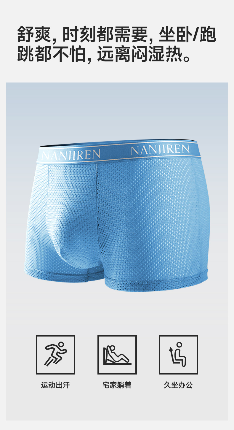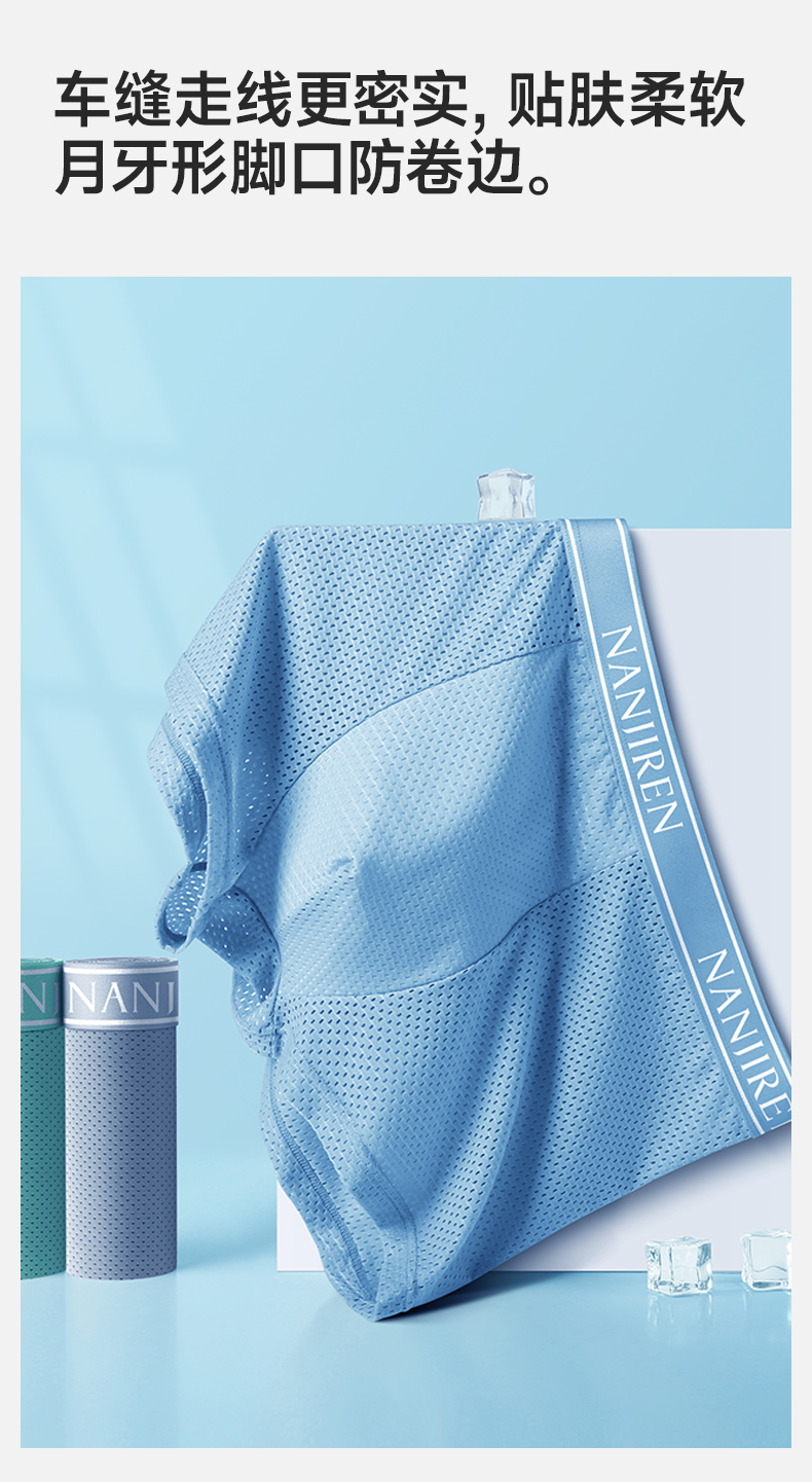 南極人內褲男士冰絲網孔四角短褲頭男款男生平角夏季抗菌2025新款