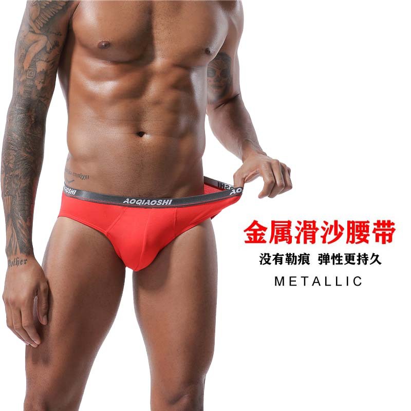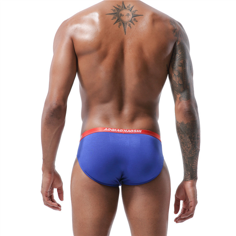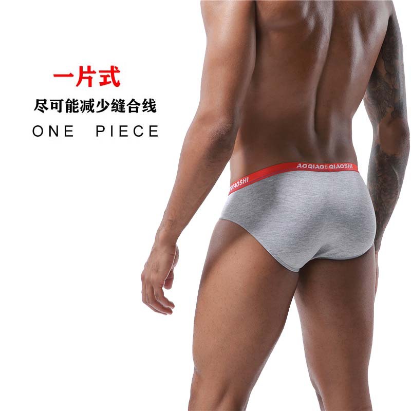 三條男士大囊袋雙層內褲透氣莫代爾無痕U凸青年性感運動三角褲夏