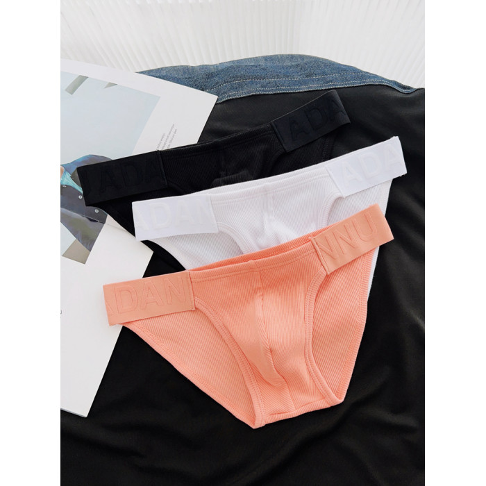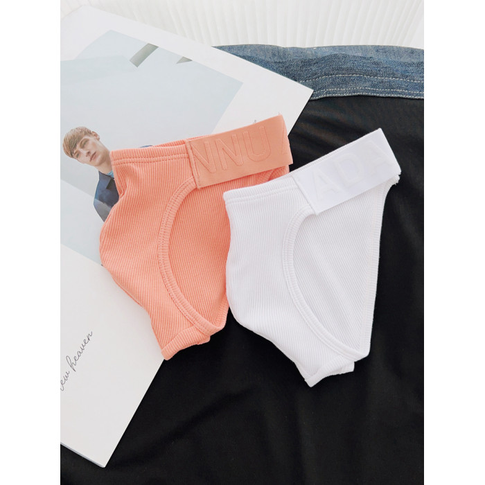 2條裝男士三角內褲低腰螺紋棉高叉U凸舒適純色青年性感短褲頭