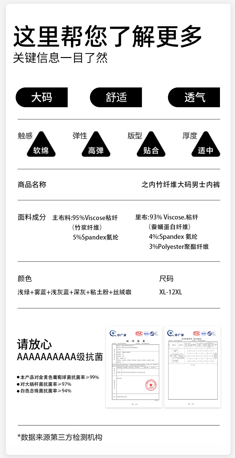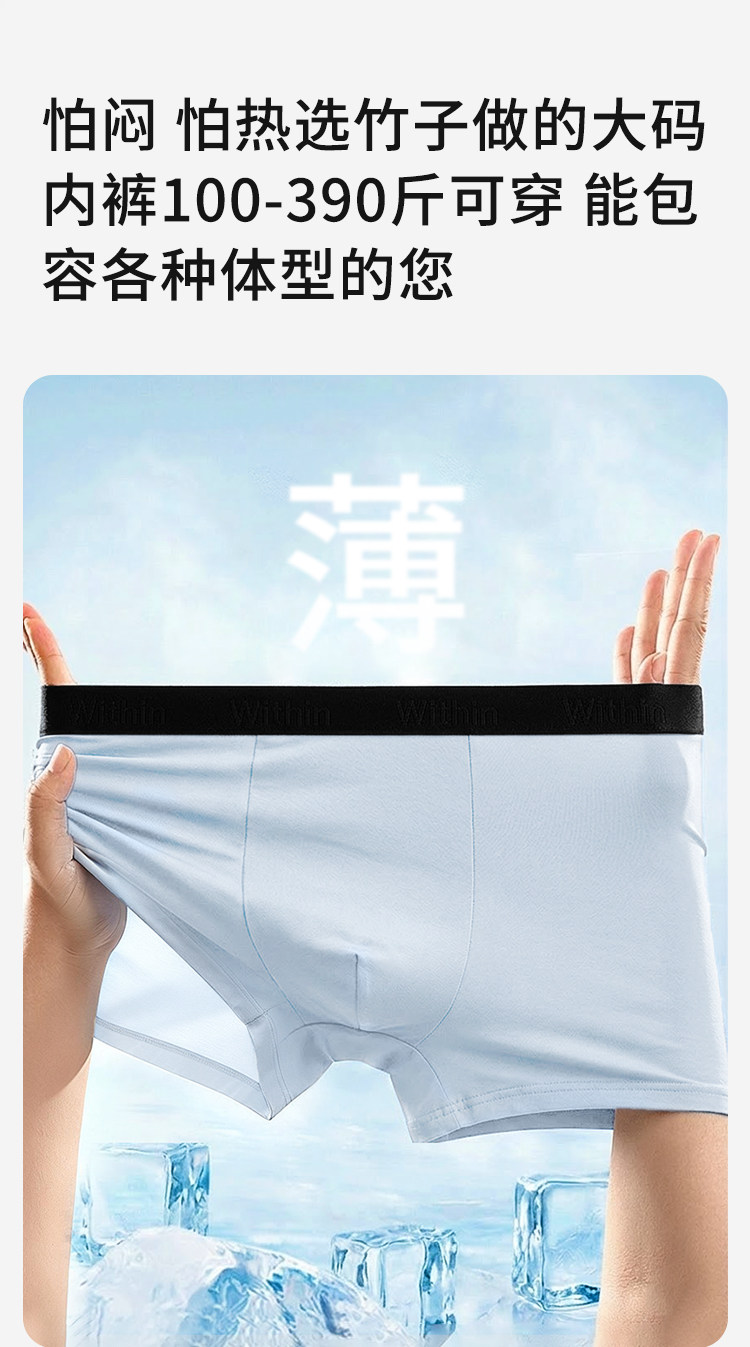 之內竹纖維內褲男士10A級抗菌加肥加大碼肥佬平角褲寬鬆四角短褲