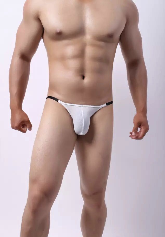 薄款透氣網眼高叉U凸設計半包臀丁字低腰運動休閒男士三角內褲