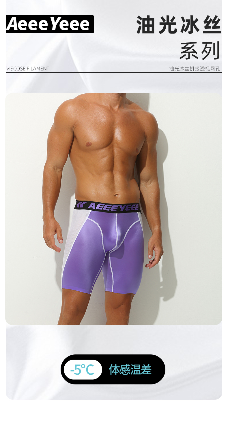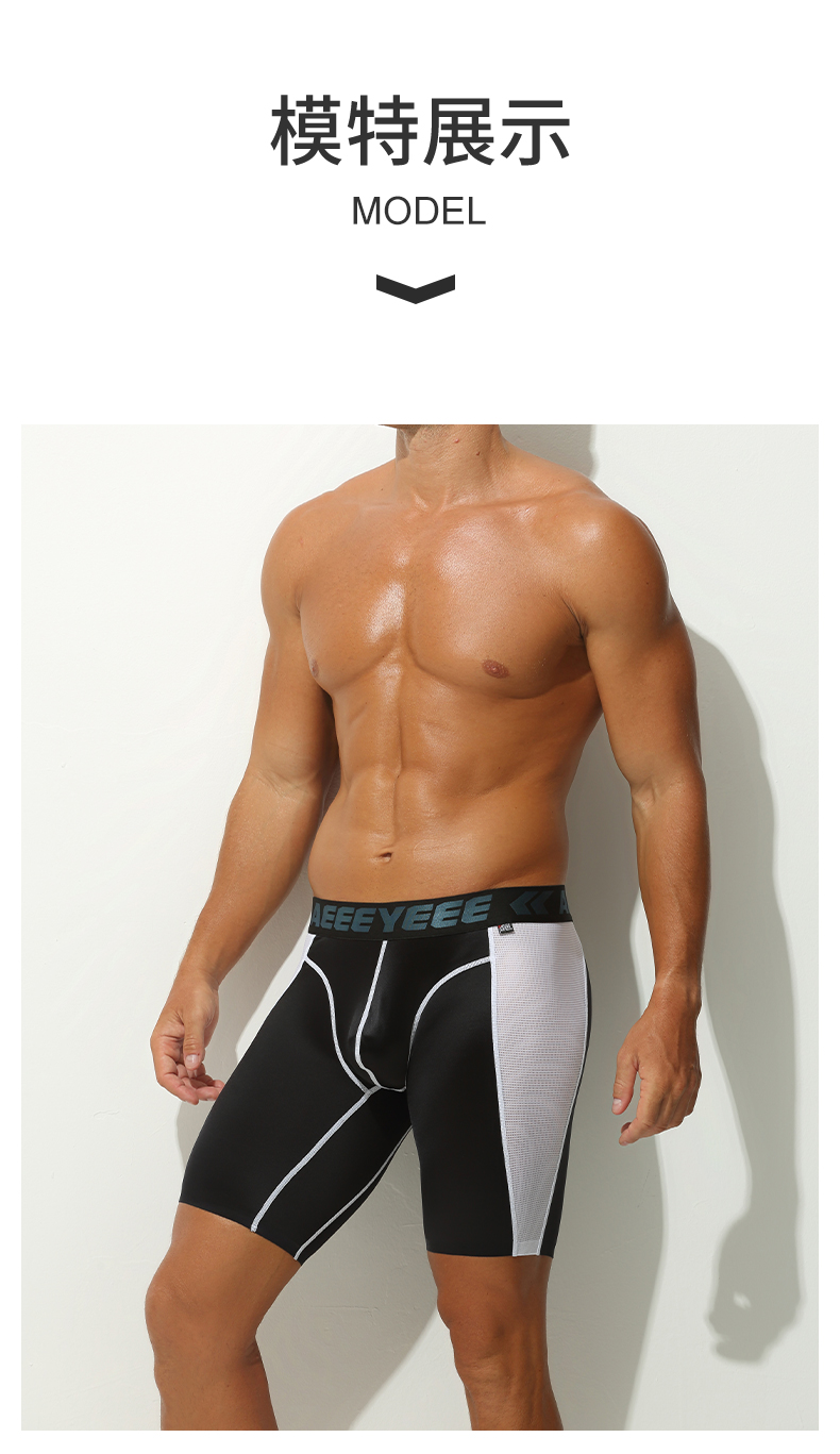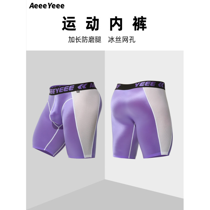 男士運動內褲平角褲低腰冰絲防磨腿加長透氣運動跑步大碼四角短褲