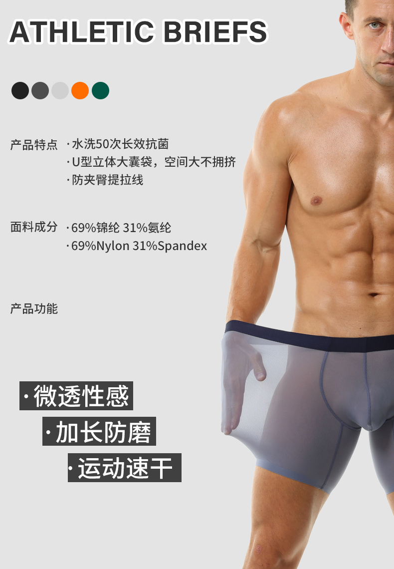 內褲男冰絲款平角褲夏季透氣運動加長防磨襠速乾薄大碼四角褲跑步