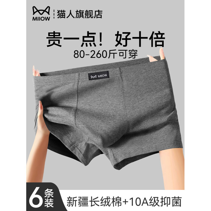 貓人大碼男士內褲純棉四角褲男生2025新款寬松加肥加大男款平角褲