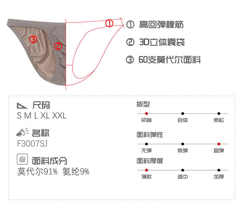 | 襠部材質成分 | 莫代爾纖維(莫代爾)91% 聚氨酯彈性纖維(氨綸)9% |
