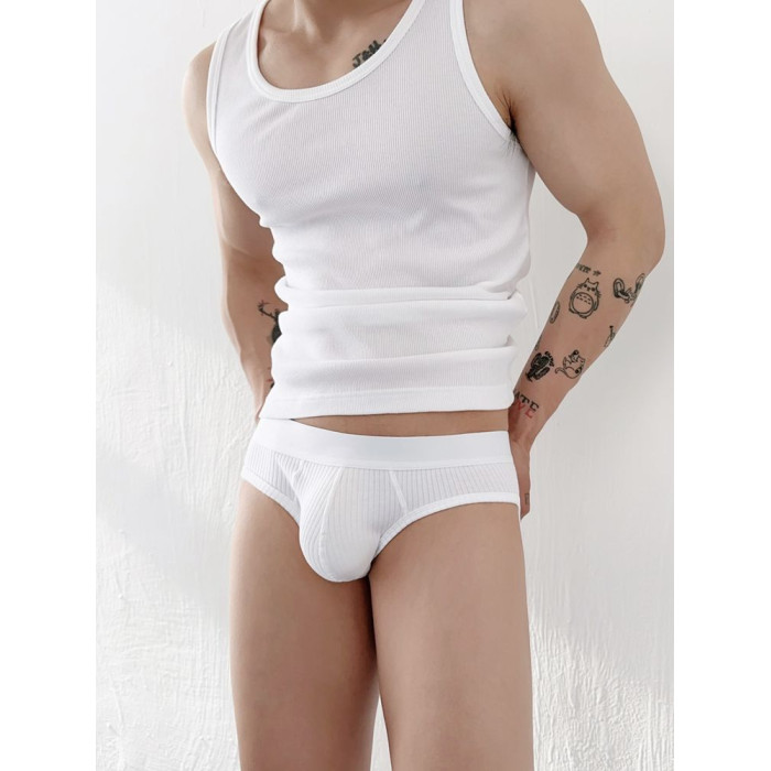 2條裝男士內褲三角褲螺紋棉低腰性感U凸舒適純色青年潮流底褲