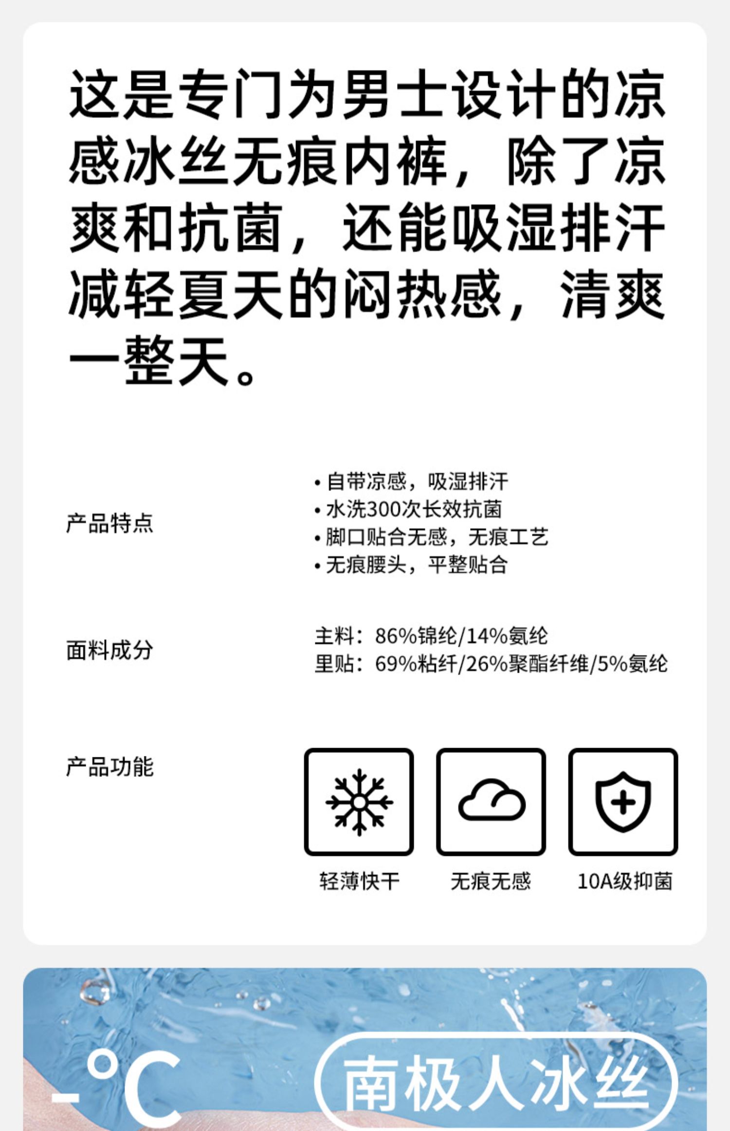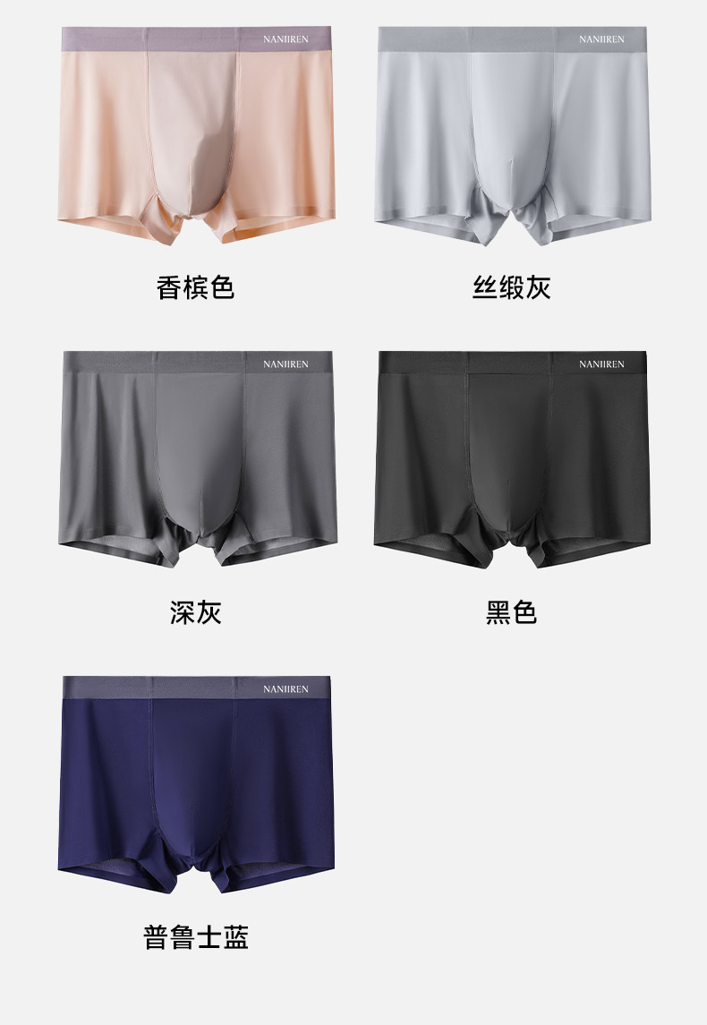南極人男生冰絲無痕內褲男士抗菌襠四角底褲頭平角短褲衩夏季薄款