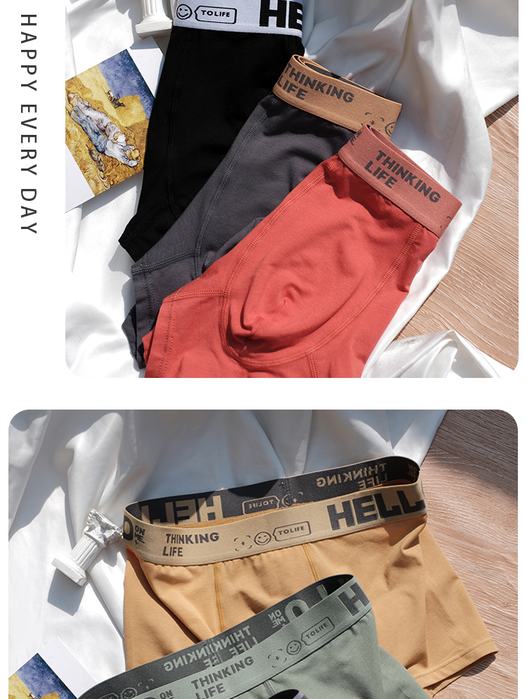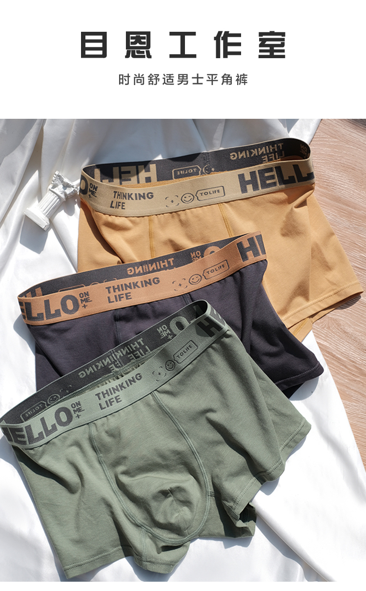 三條裝男士內褲莫代爾棉平角褲時尚運動透氣四角褲男生短褲新品