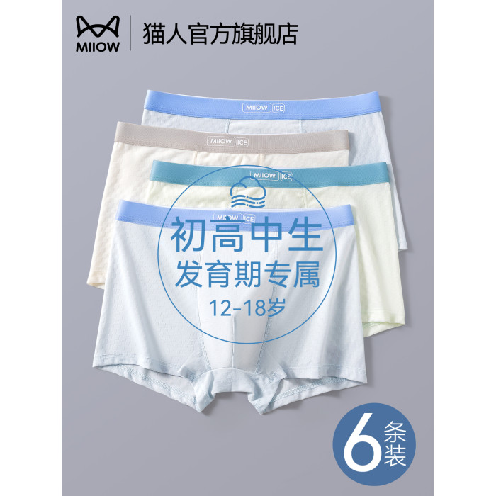 貓人青少年冰絲內褲男生初高中生髮育期大碼胖男童透氣四角短褲頭