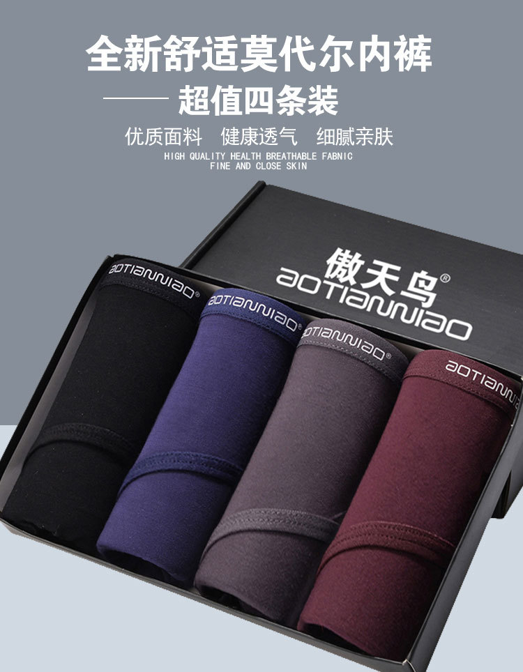 4條裝 莫代爾棉男三角內褲竹纖維加肥加大碼肥佬吸汗底褲頭短褲衩