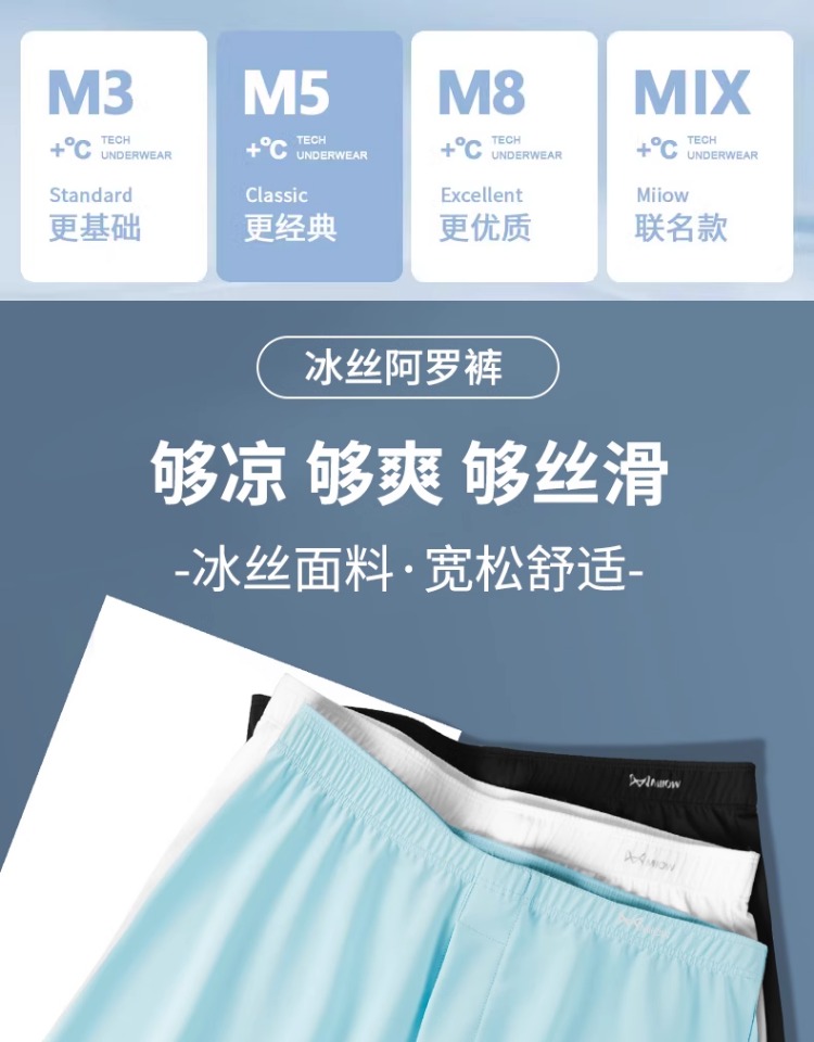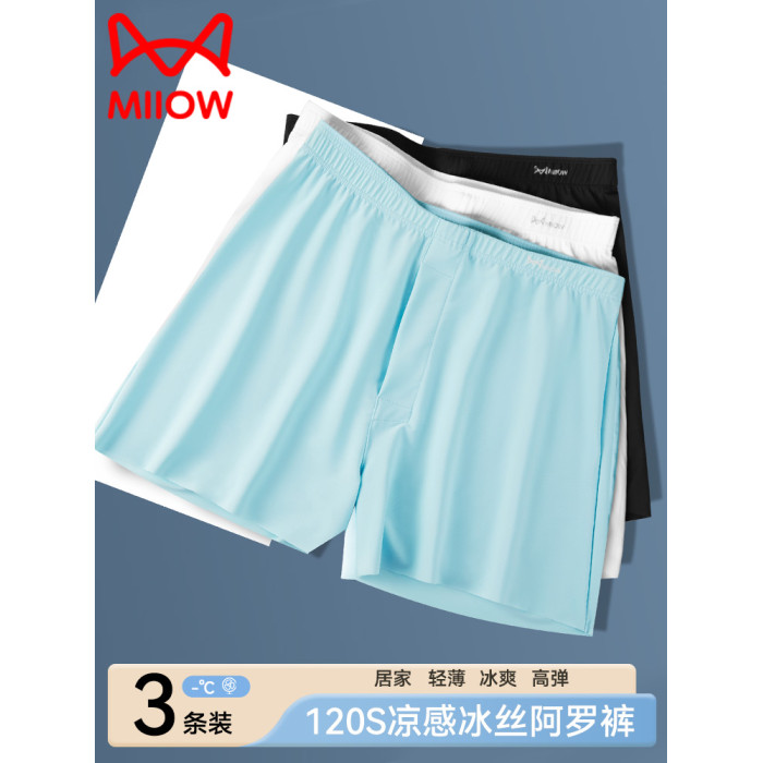 貓人阿羅褲男士內褲男冰絲涼感透氣大褲頭可外穿家居寬松裸睡睡褲