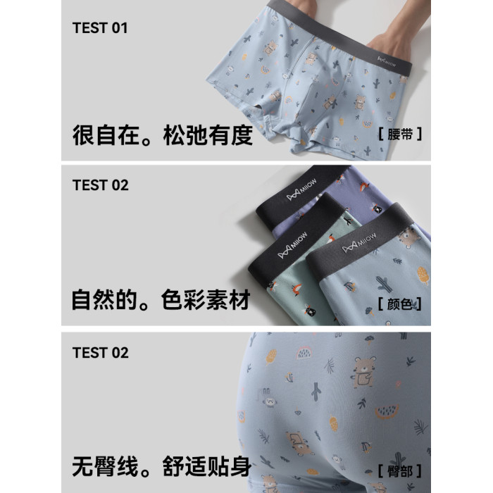 貓人青少年內褲男士純棉抑菌男生初高中學生大碼男款印花四角短褲