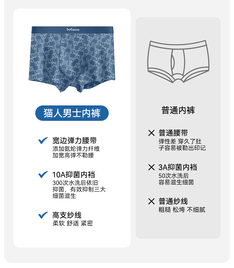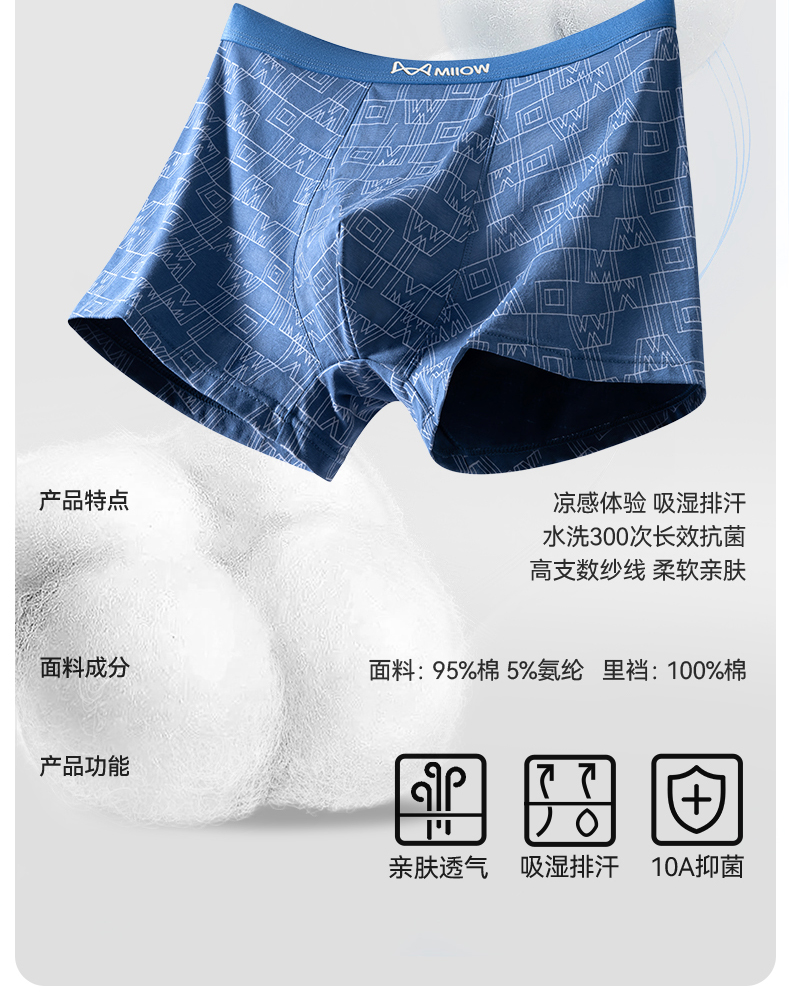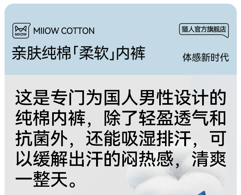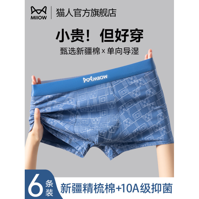 貓人男士內褲男生純棉抗菌四角褲2025新款男式運動平角短褲衩男款