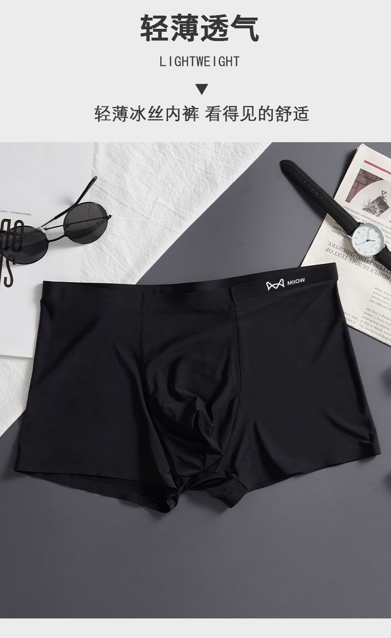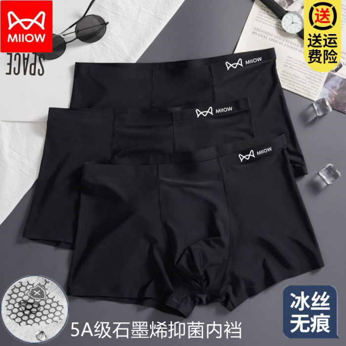 貓人男士內褲黑色無痕冰絲石墨烯抗菌平角夏季男運動透氣四角短褲