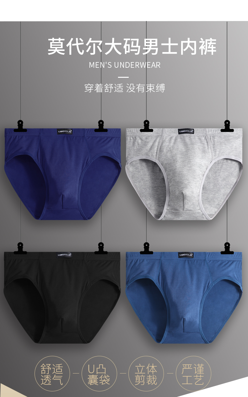 莫代爾竹炭面料男士內褲加肥加大碼寬松透氣抗菌中青年三角褲衩男