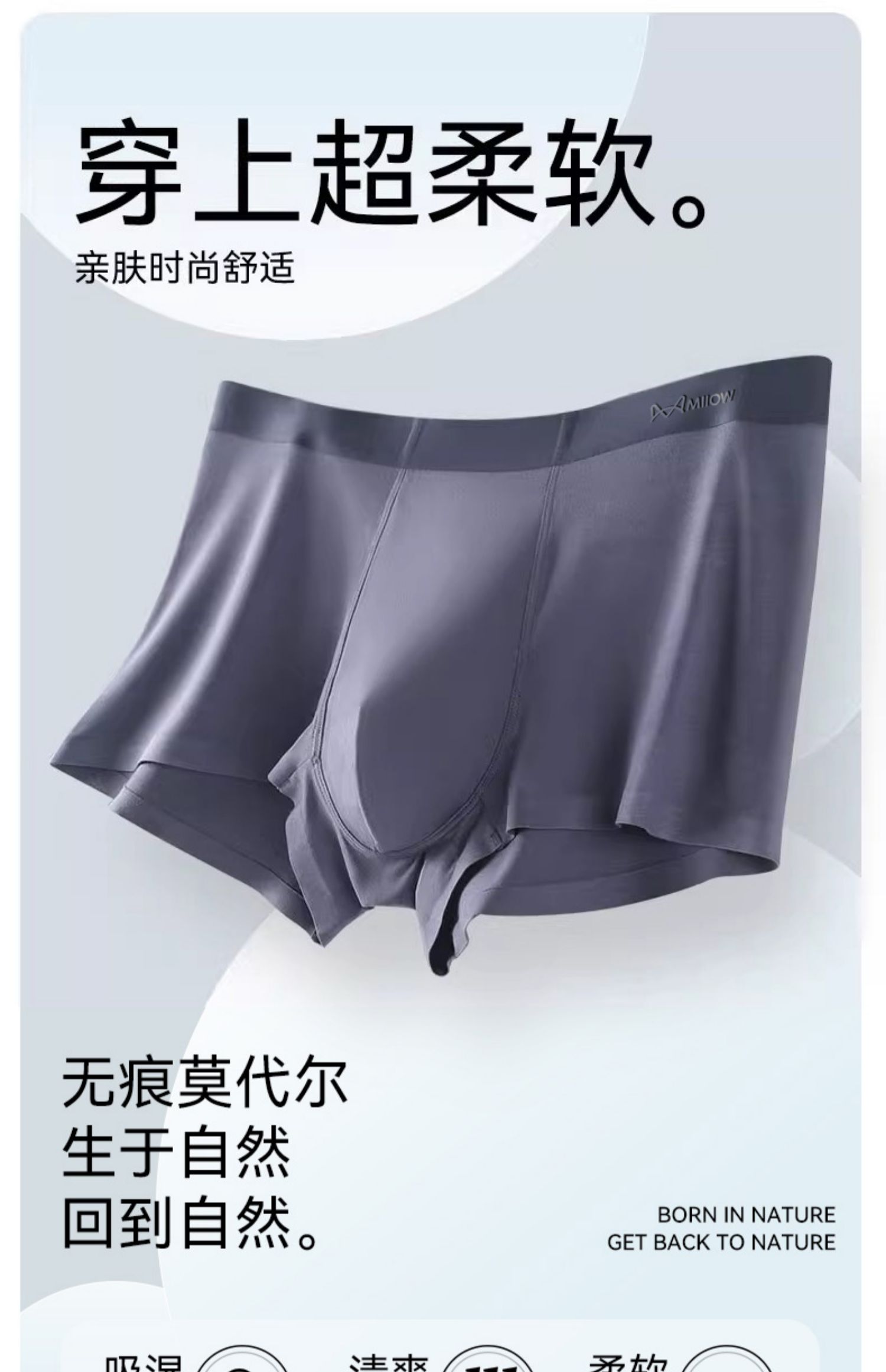 貓人男士內褲純棉抗菌襠男生莫代爾無痕四角褲男款平角透氣短褲衩