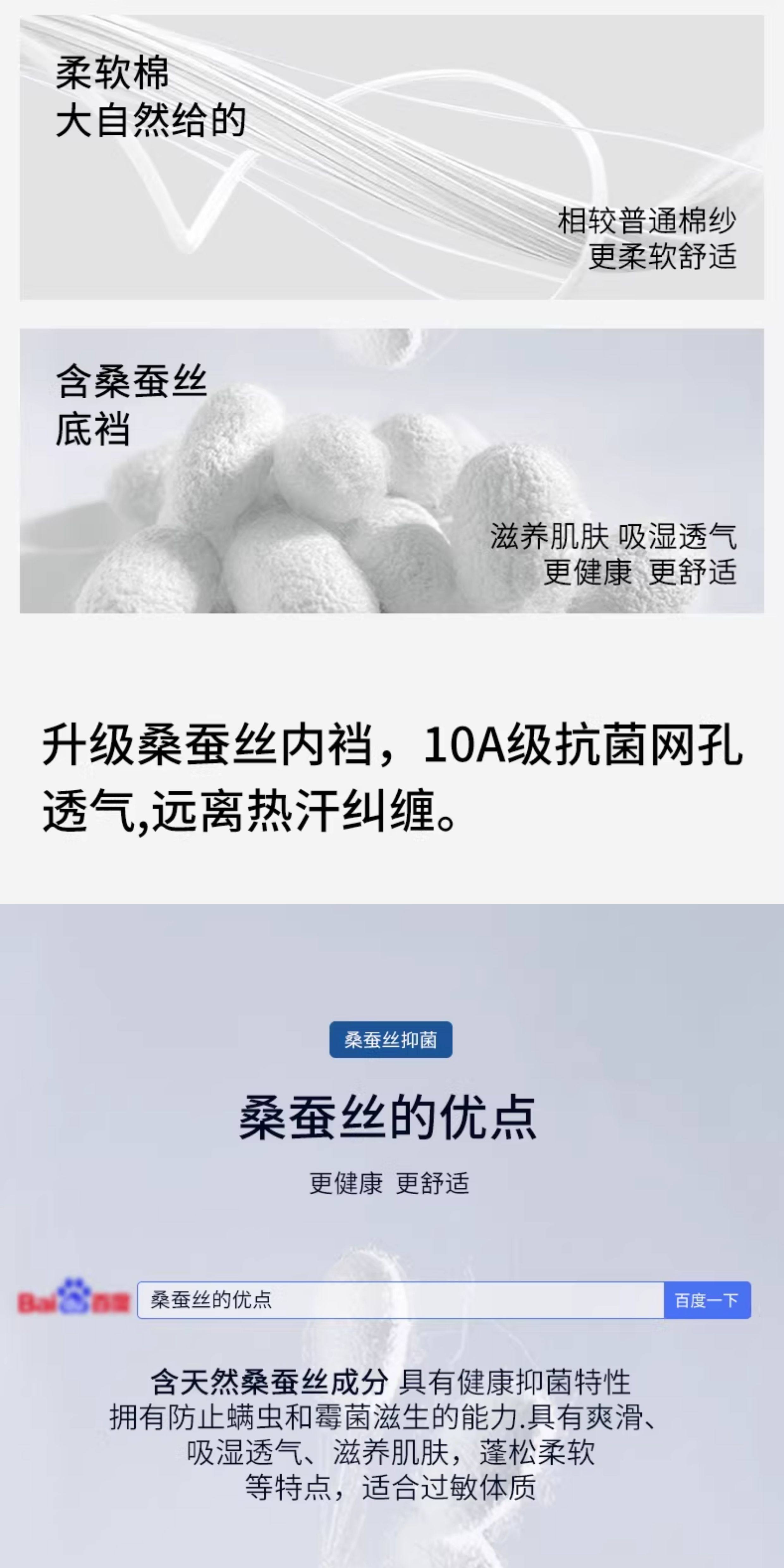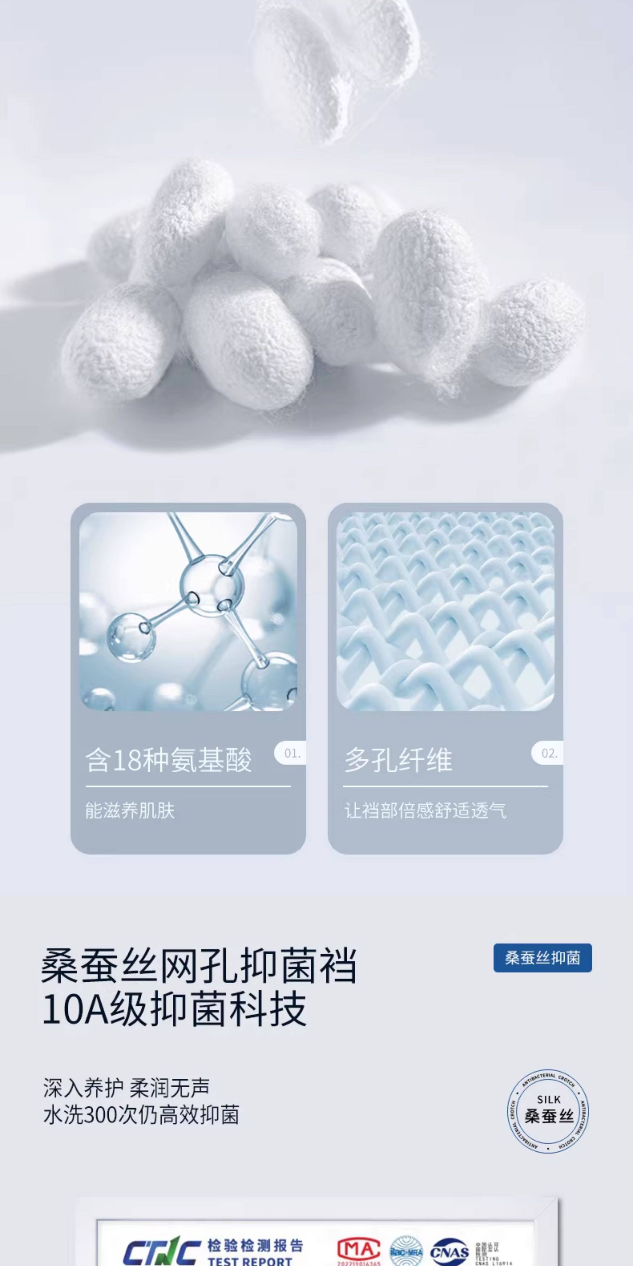 | 襠部材質成分 | 粘膠纖維(粘纖)87.2% 聚氨酯彈性纖維(氨綸)5.5% 桑蠶絲4.8% 聚醯胺纖維(錦綸)2.5% |