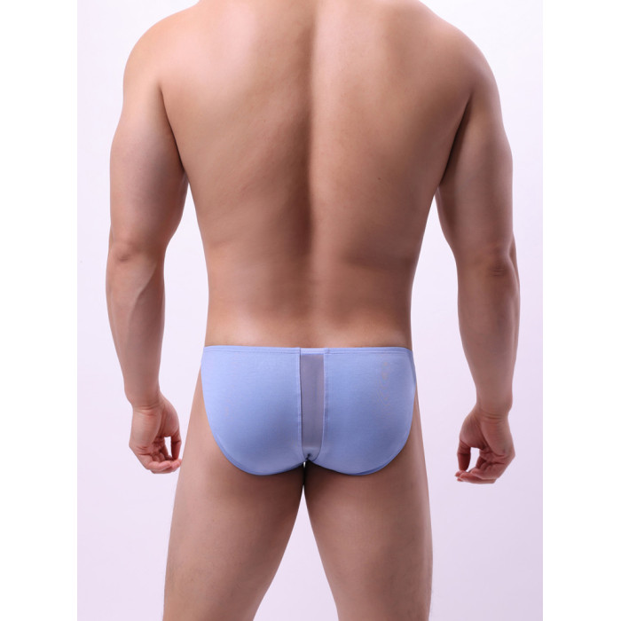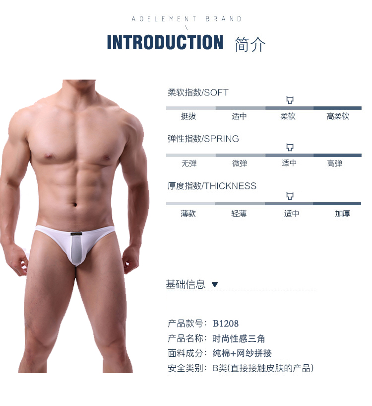 純棉網紗拼接男士三角褲性感前後透視低腰緊身激凸囊袋三角男內褲